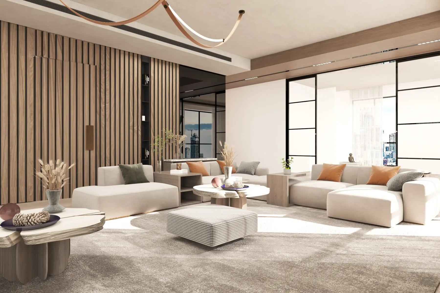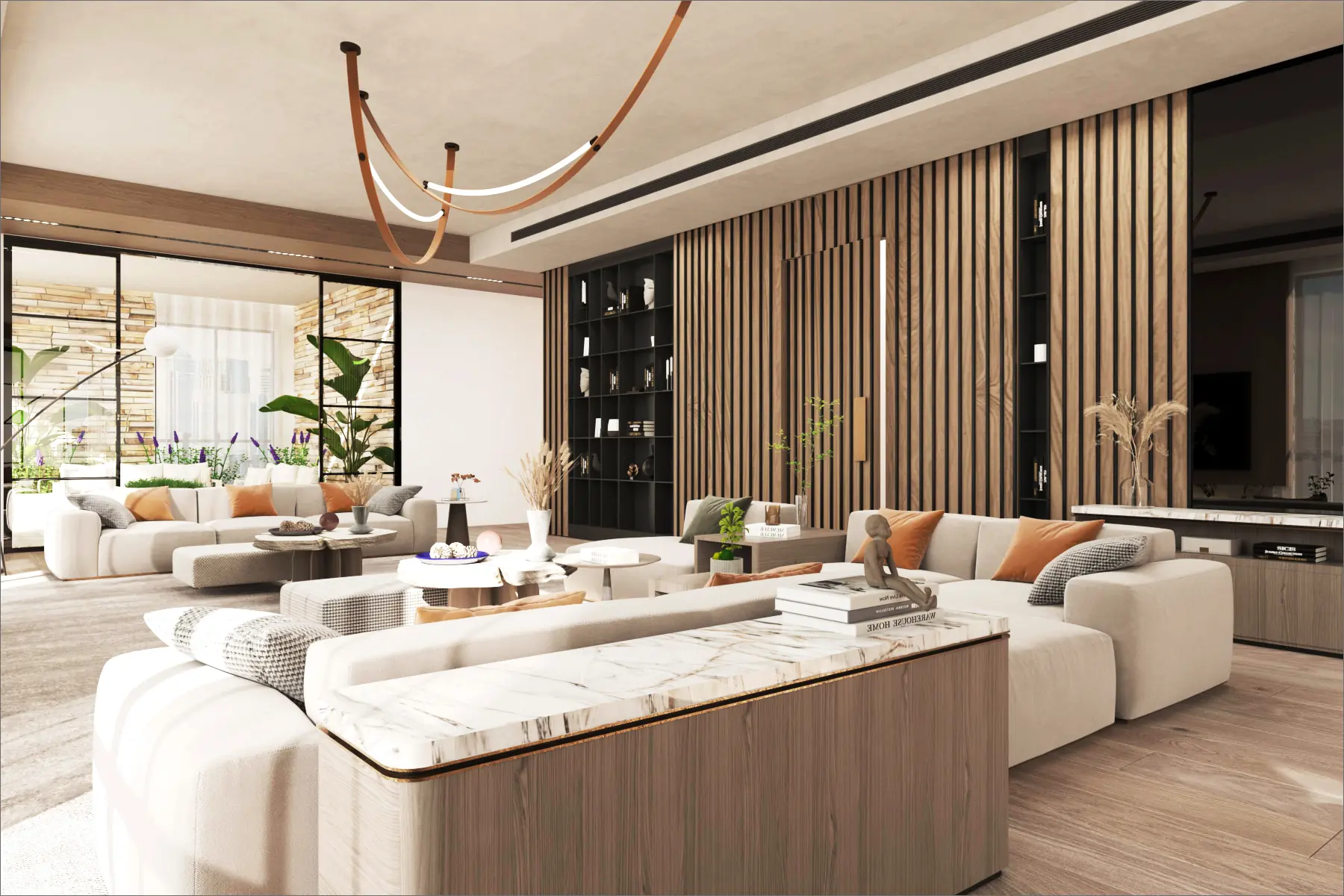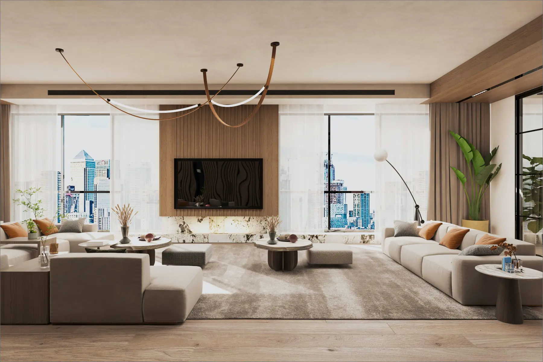 At this residence in Trump Tower, Ahmed faced the challenge of creating a bright and unique space that exudes coziness while maintaining an ultra-luxurious feel. Behlasa Interiors design aesthetic emphasised natural wood and organic furniture, incorporating fine detailing alongside a thoughtful use of tiles and lighting to achieve a modern, minimalist finish.