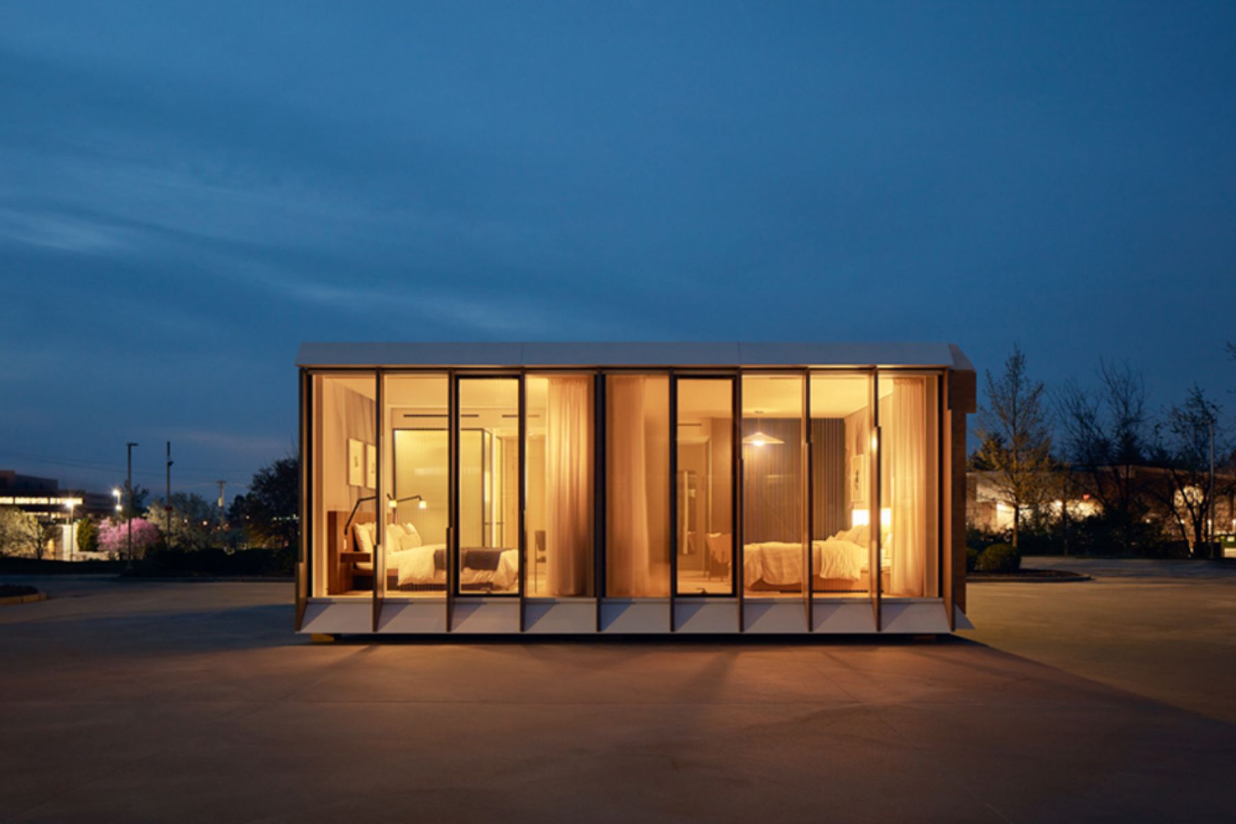 Inside, the space features custom millwork that reflects the exterior design, tailored furnishings, and voice-activated floor-to-ceiling windows. This innovative approach, developed with MiTek, establishes a new benchmark for efficiency while maintaining striking beauty.