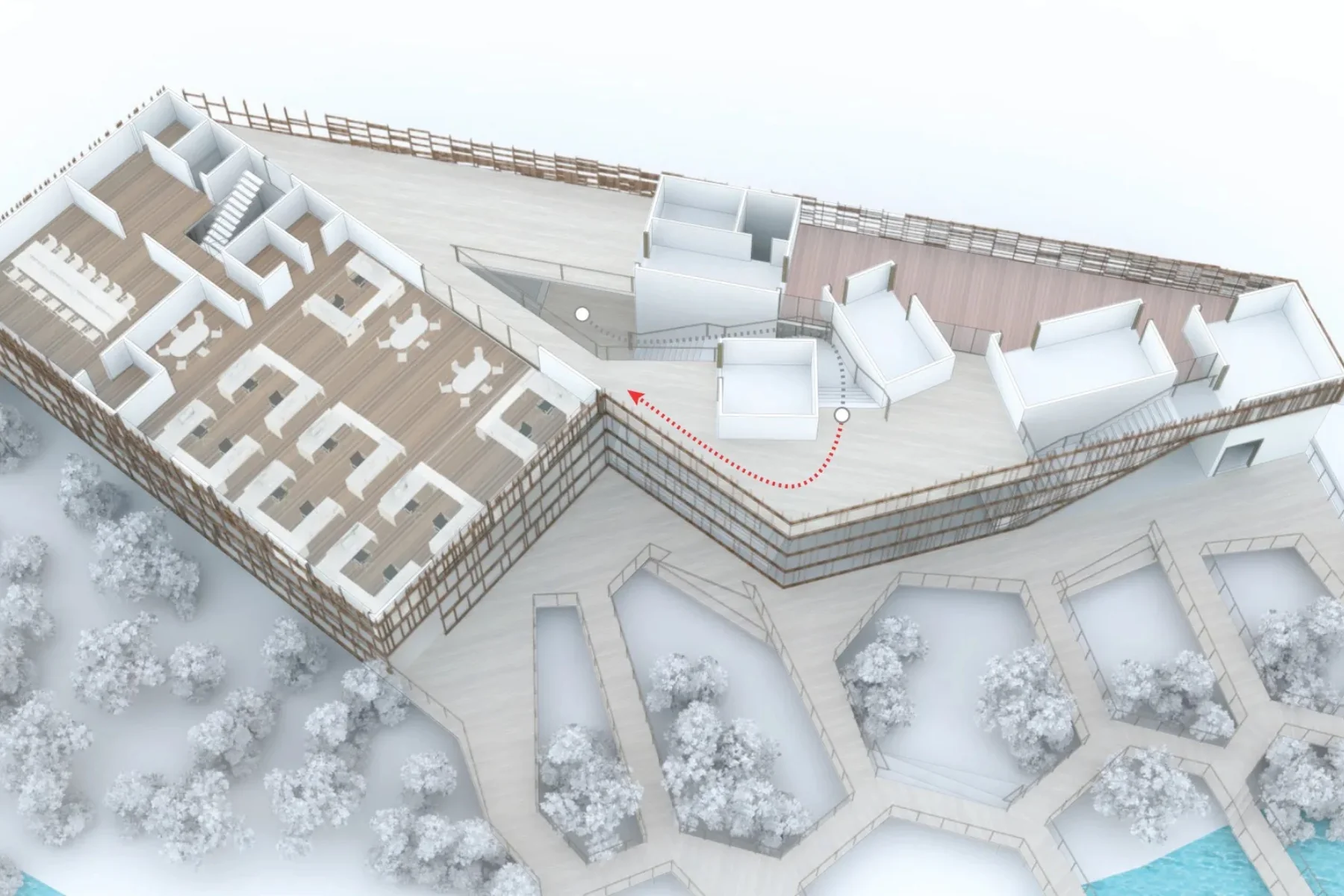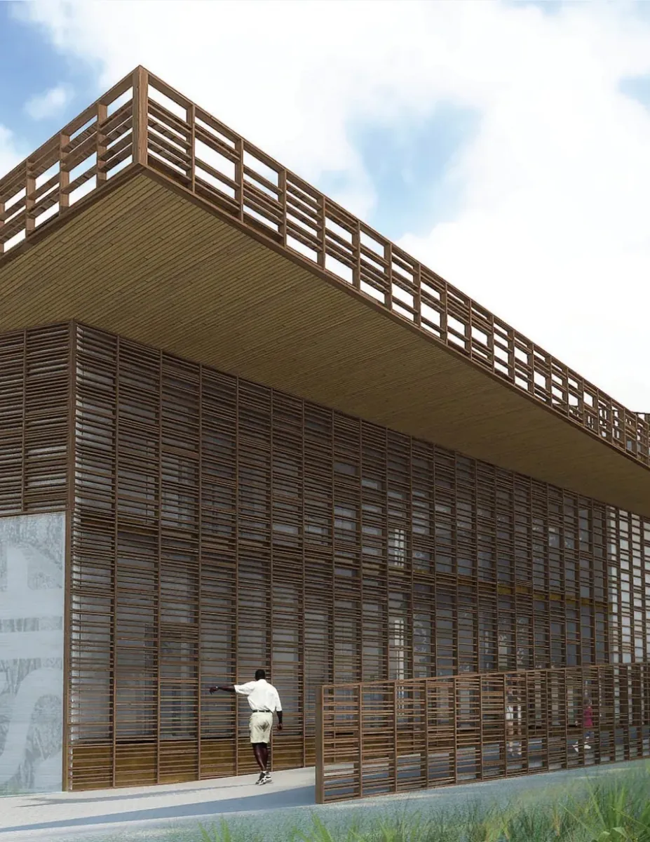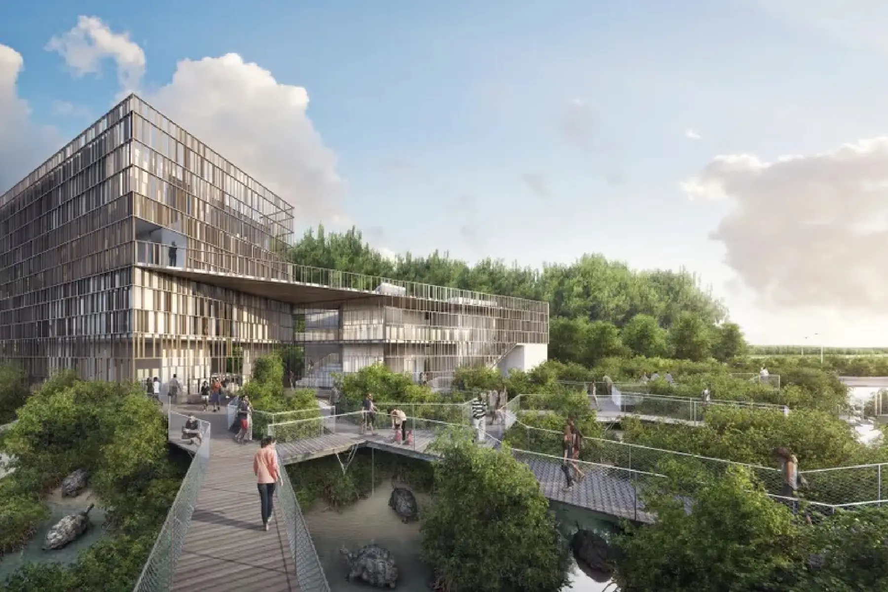 The people of Mahé, Seychelles, serve as custodians of the remote Aldabra atoll, accessible to few due to its fragile ecology. DF&A designed the Seychelles Islands Center to evoke Aldabra’s unique landscapes, with a façade reflecting the forces of nature. This visitor center offers an indirect experience of the atoll through immersive pavilions that capture its sights, sounds, and scents. Visitors can soar with birds, swim alongside fish, and explore the habitats of Aldabra’s iconic tortoises, creating a profound connection to this natural wonder.