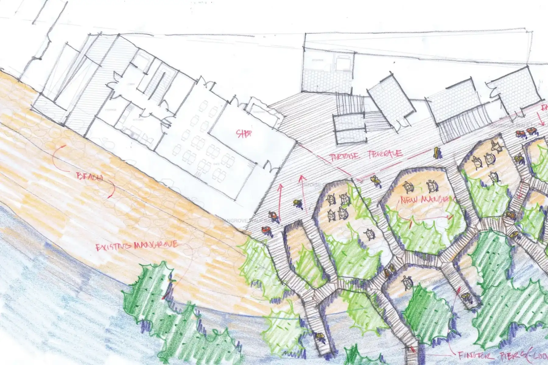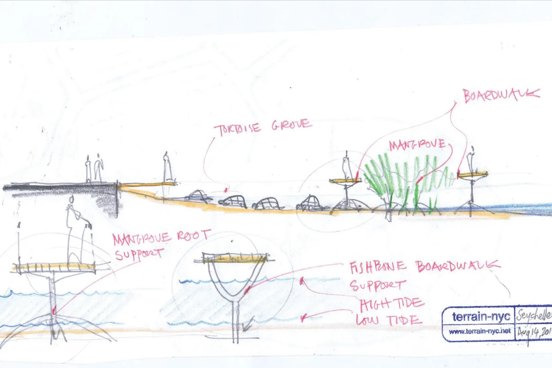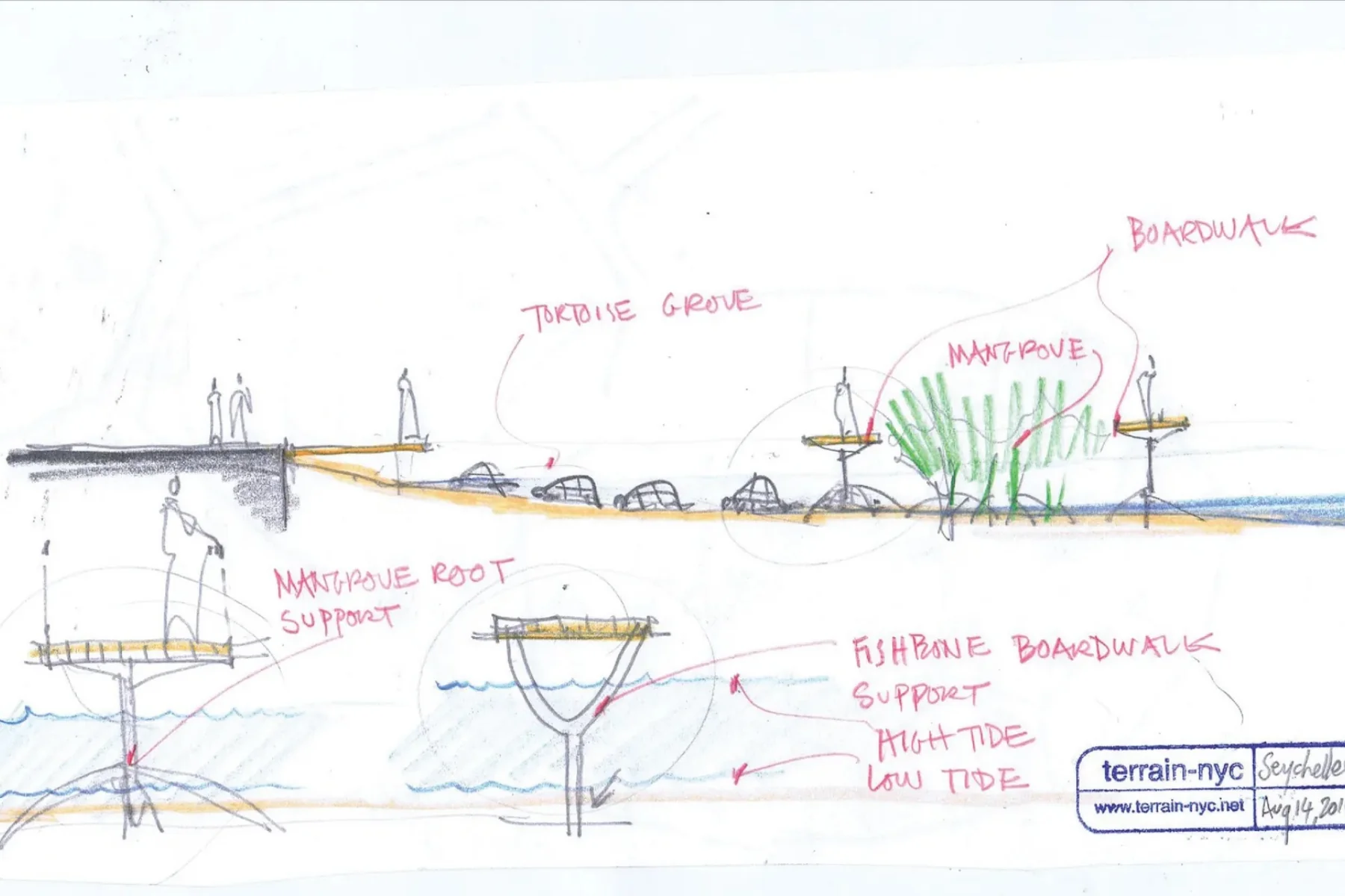 The people of Mahé, Seychelles, serve as custodians of the remote Aldabra atoll, accessible to few due to its fragile ecology. DF&A designed the Seychelles Islands Center to evoke Aldabra’s unique landscapes, with a façade reflecting the forces of nature. This visitor center offers an indirect experience of the atoll through immersive pavilions that capture its sights, sounds, and scents. Visitors can soar with birds, swim alongside fish, and explore the habitats of Aldabra’s iconic tortoises, creating a profound connection to this natural wonder.