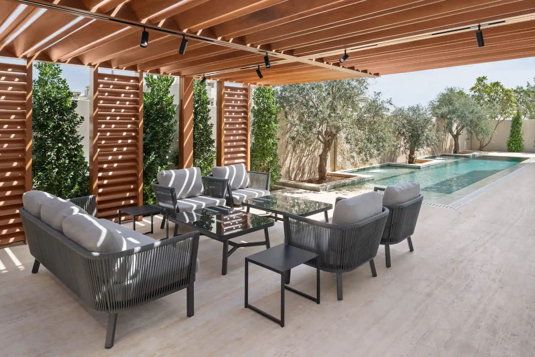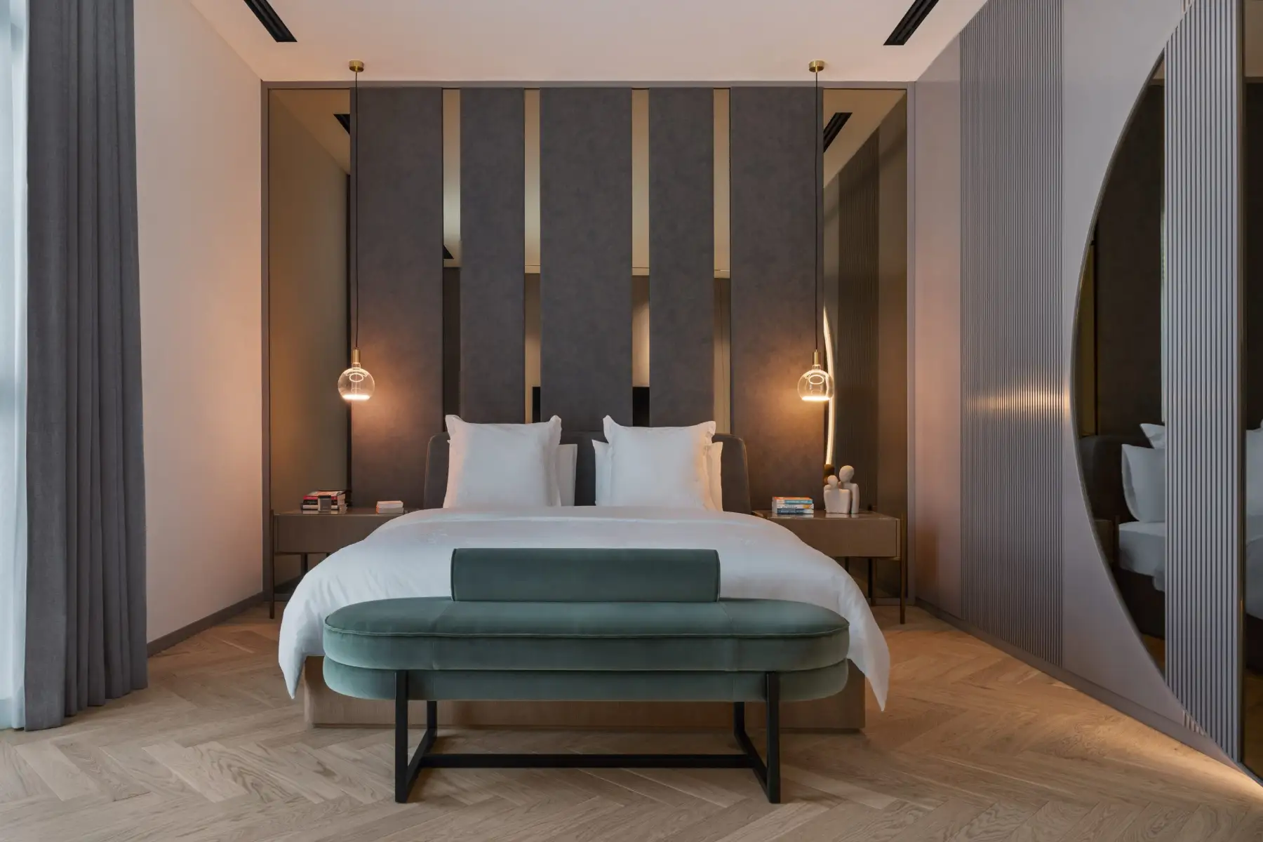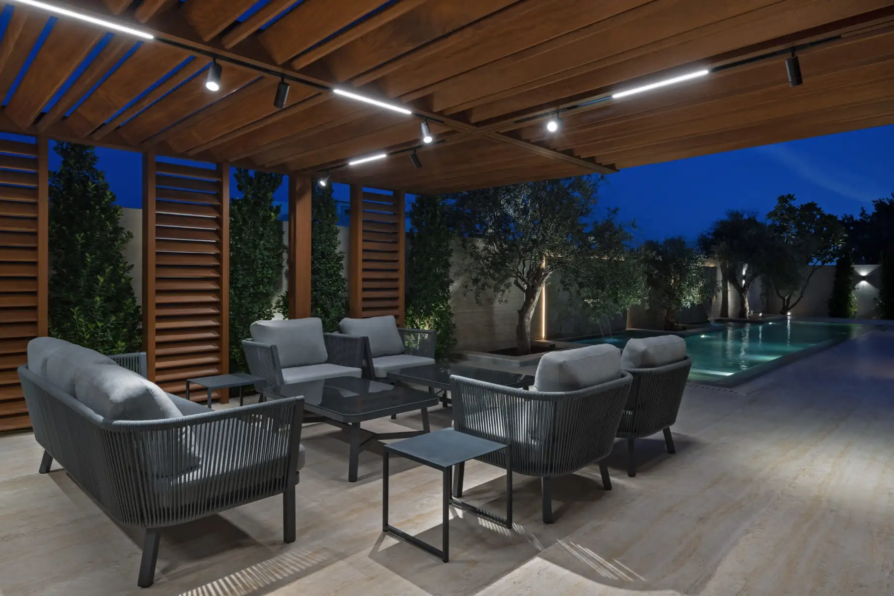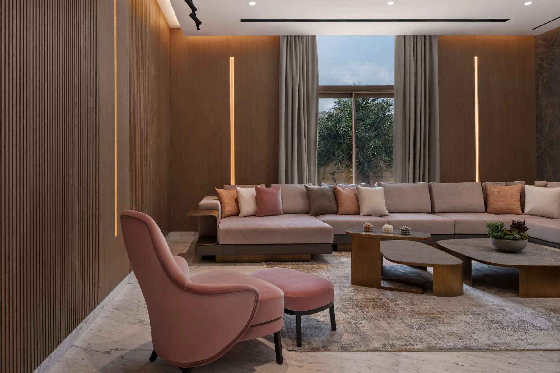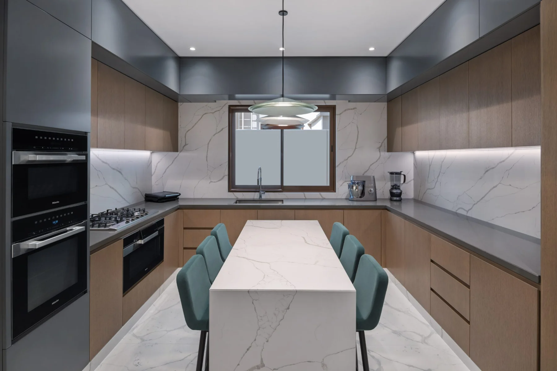 Villa K, a two-story residence showcases the beauty of natural marble. Designed by IAIA Studio, the villa features a striking double-height entrance, sculptural staircase, and a reception area where marble’s intricate patterns and textures define the space. Each room tells a unique story through carefully selected marble slabs, wood accents, and thoughtful lighting.