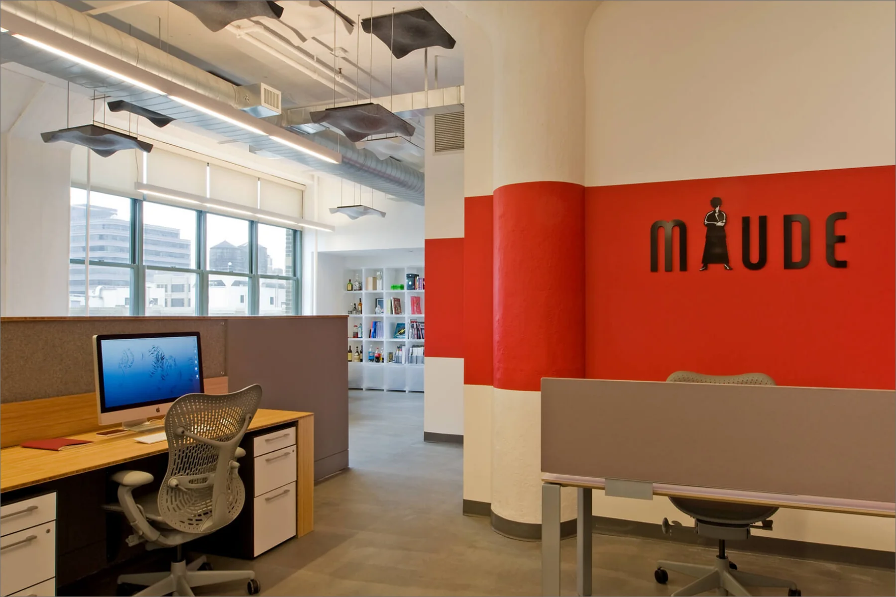 The client envisioned a workspace that felt more like home to inspire both employees and clients. DHD designed an open, studio-like environment with a continuous folding work surface and various casual meeting areas resembling stage sets.