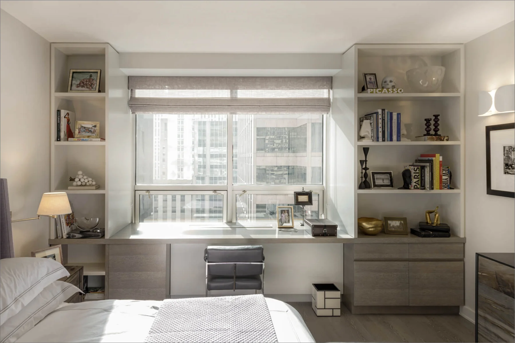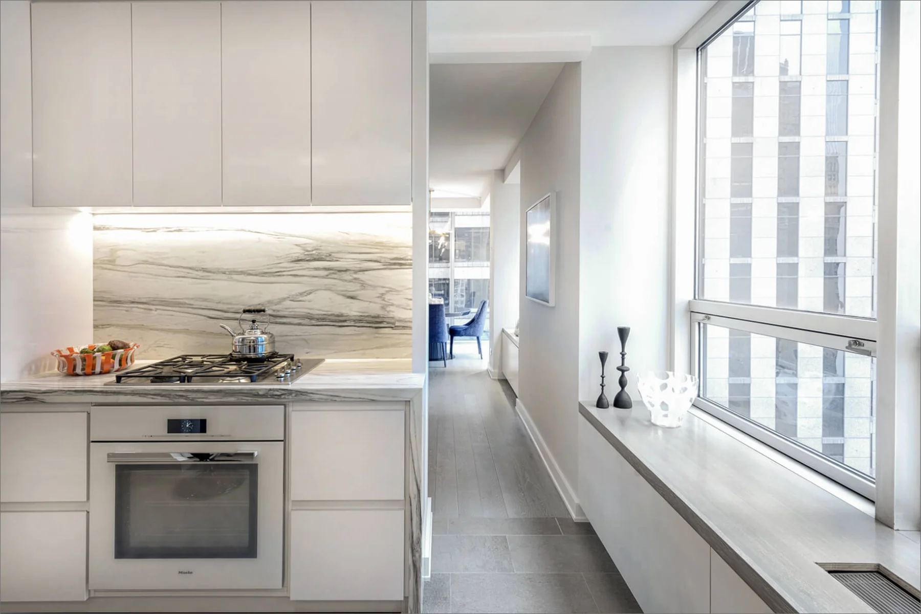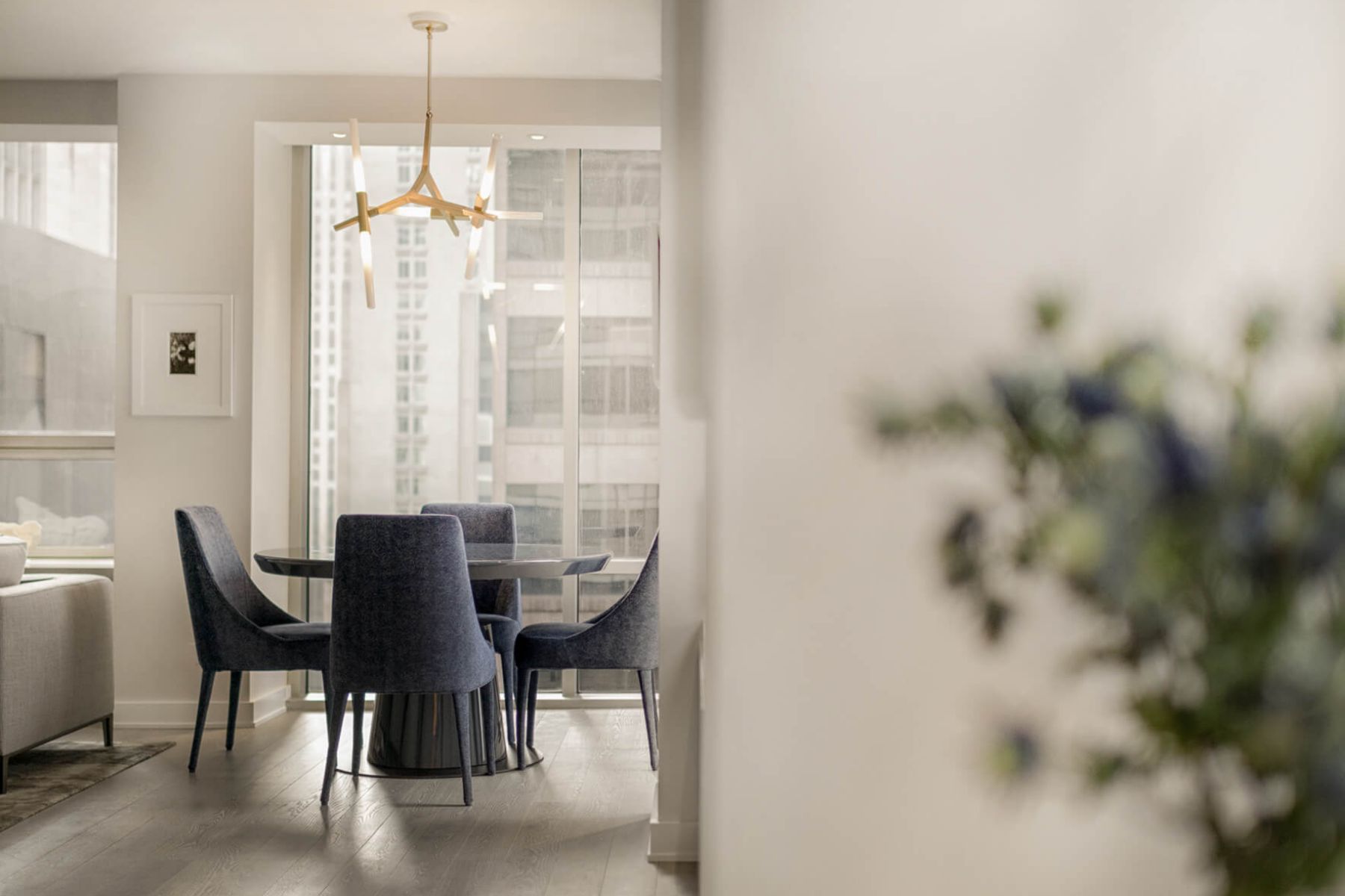 Centrally located in Manhattan, this stunning one-bedroom MOMA Tower Residence underwent a gut renovation by DHD Architecture. The design features bright, clean lines and floor-to-ceiling corner windows that showcase the vibrant urban landscape above 5th Avenue.