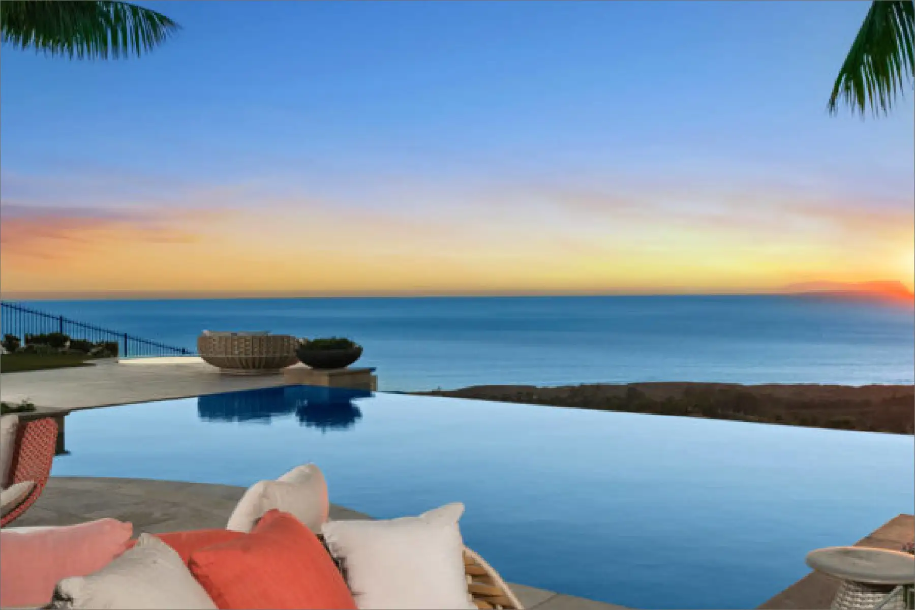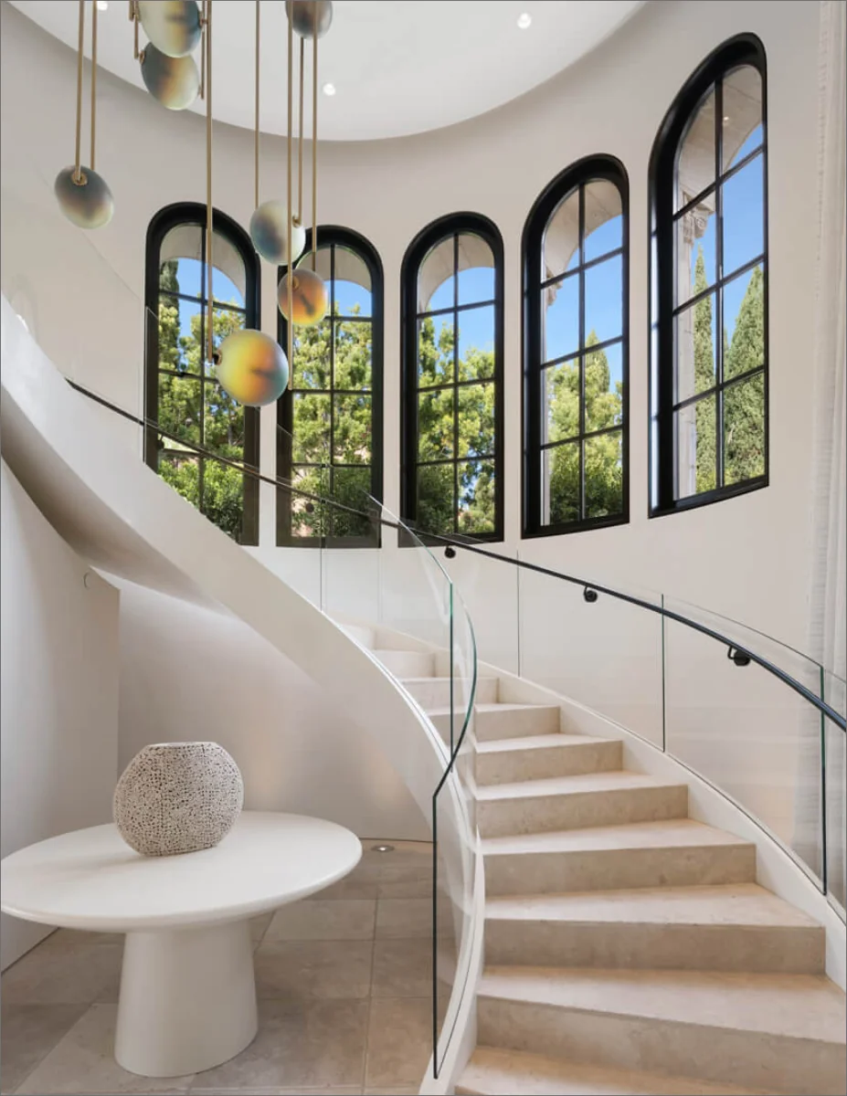 Spanning three levels, the liveable floor plan includes five bedroom suites, open social spaces, a home office with views, and a temperature-controlled wine and cigar room. The home spa features heated floors, a steam room, and a quick-fill tub, while the chic master suite boasts a frameless stand-alone shower and sweeping ocean views. The backyard is an entertainer’s paradise, complete with an infinity-edge pool and spa, fireplace, built-in BBQ, putting green, and covered dining area.