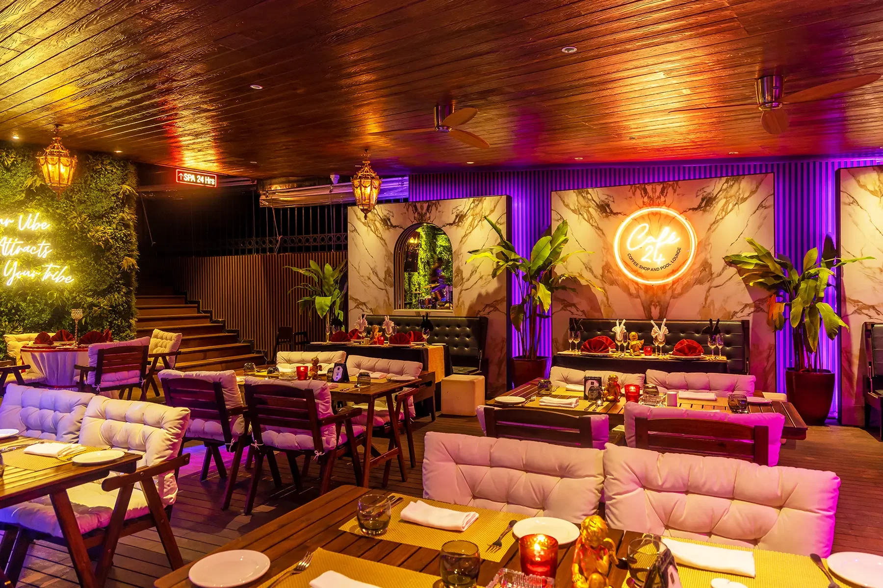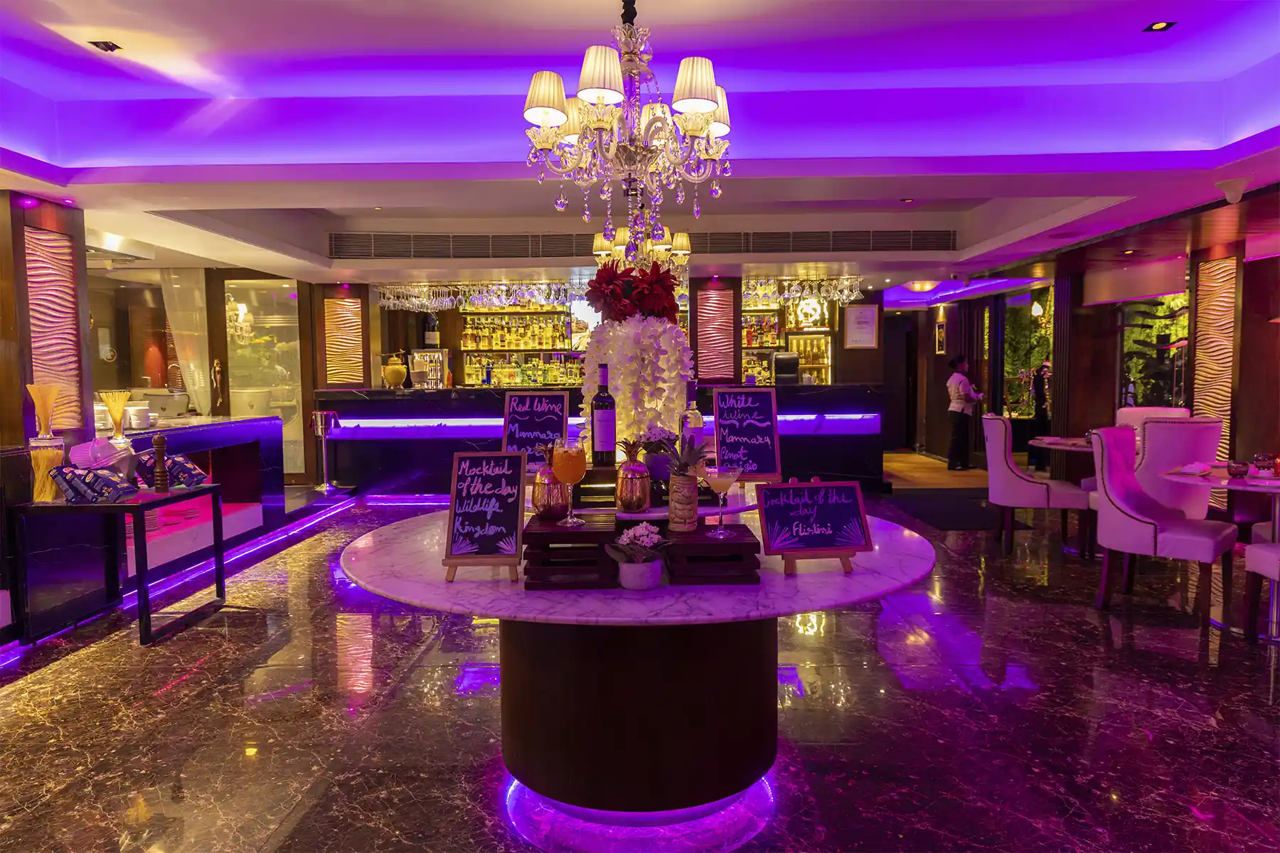 The 200-seater fine dining multi-cuisine restaurant and coffee shop is a jewel in the design assortment of Jimmy Mistry. It is adorned with large picture windows which bring in the first rays of the sun and the last throws of the moon in a 24-hour odyssey.
