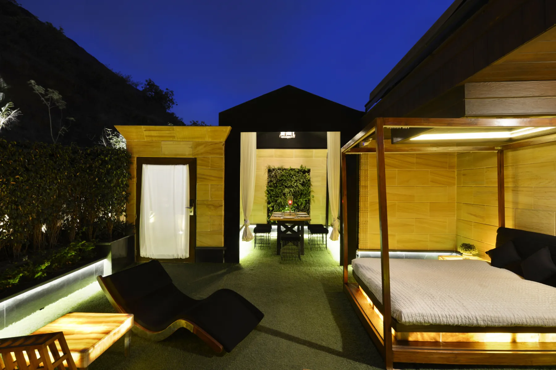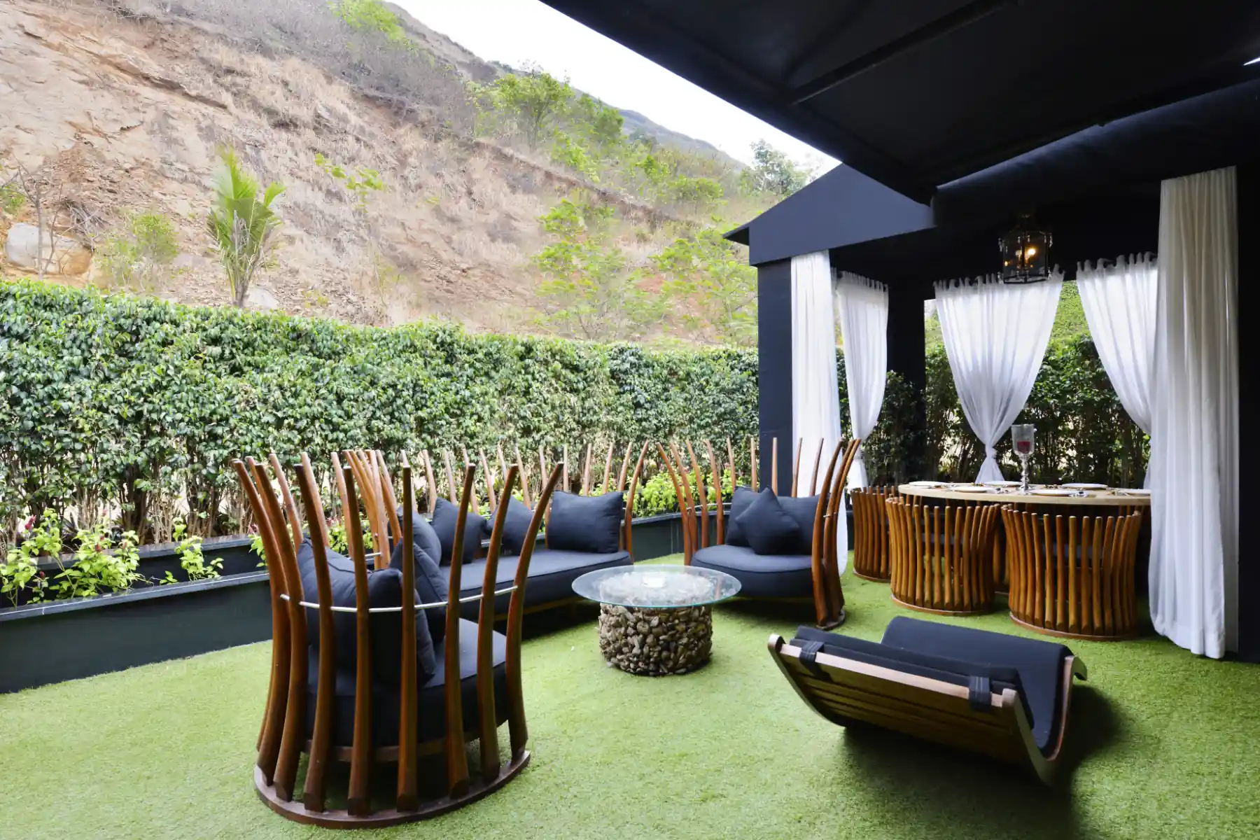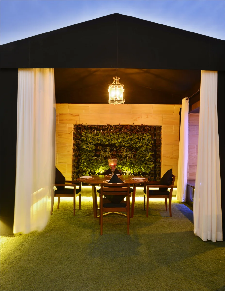 Fine dining restaurant and adjoining poolside lounge exhibiting culinary artistry