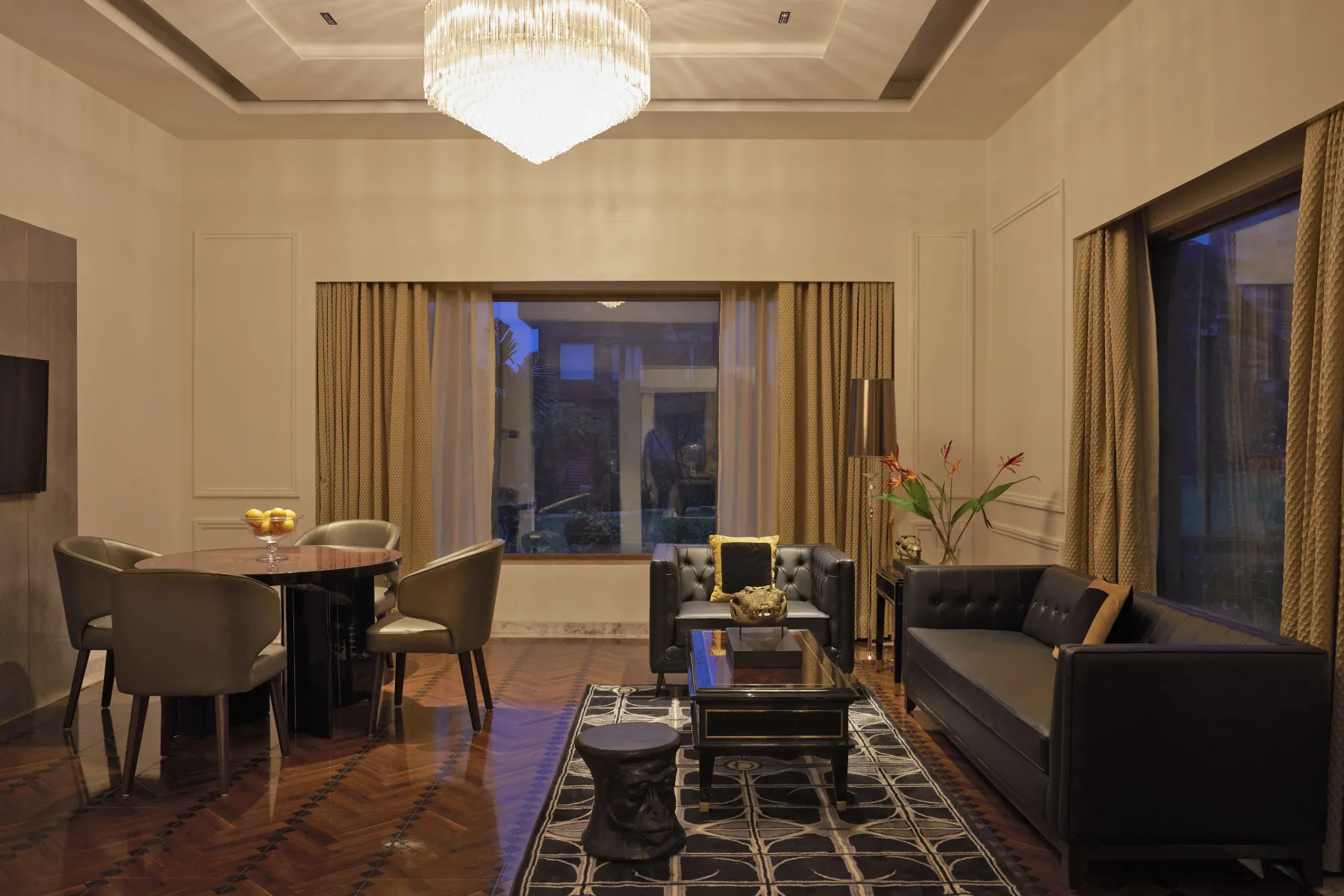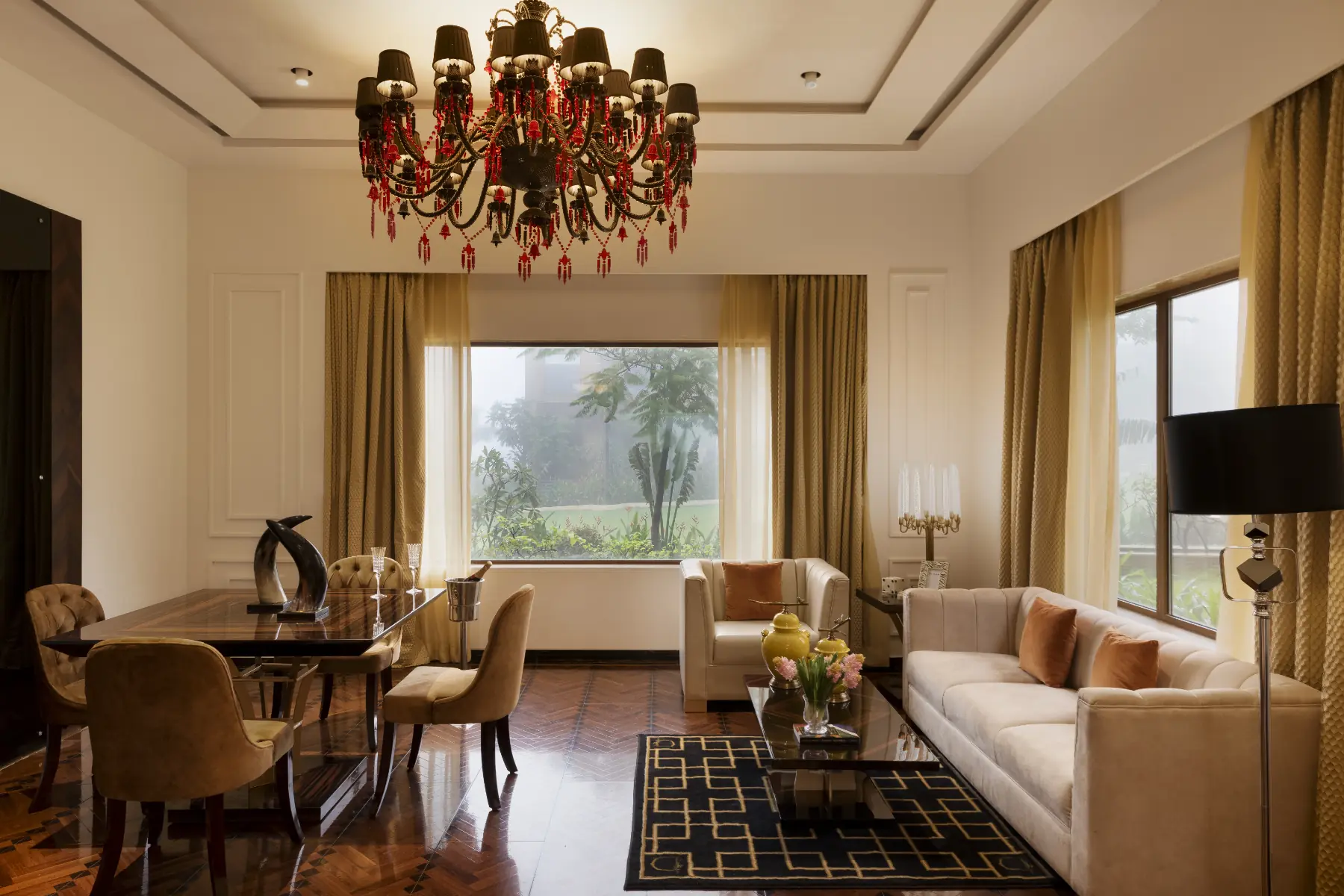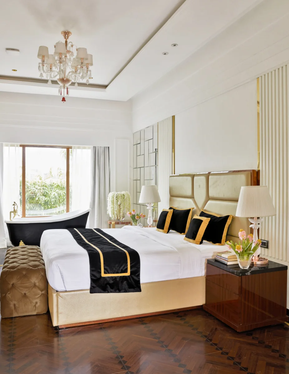 The Garden Villa Rooms designed by Jimmy Mistry provide an illusion of being nestled in nature, with views of greenery and lush lawns, from all vantage points.