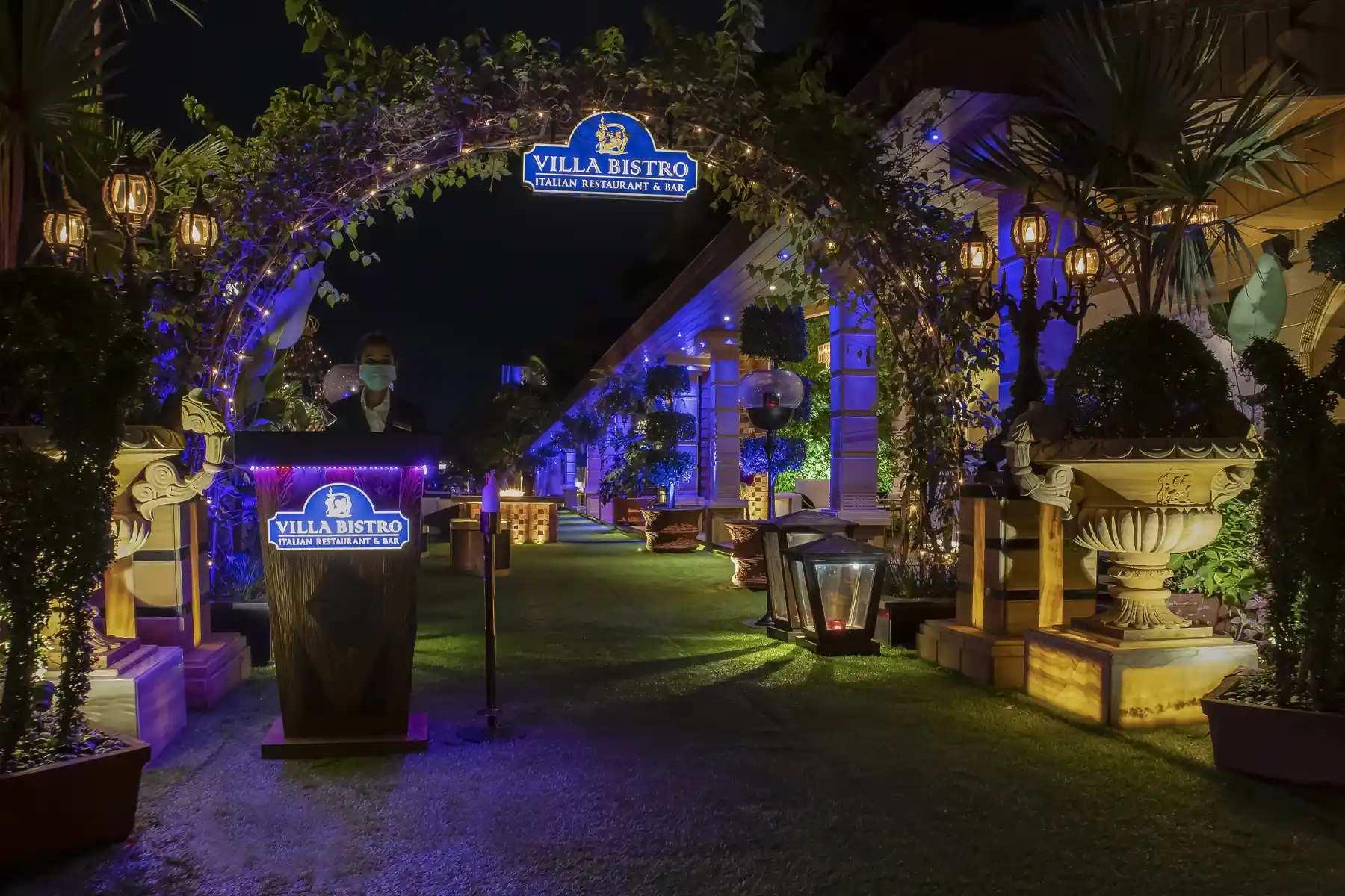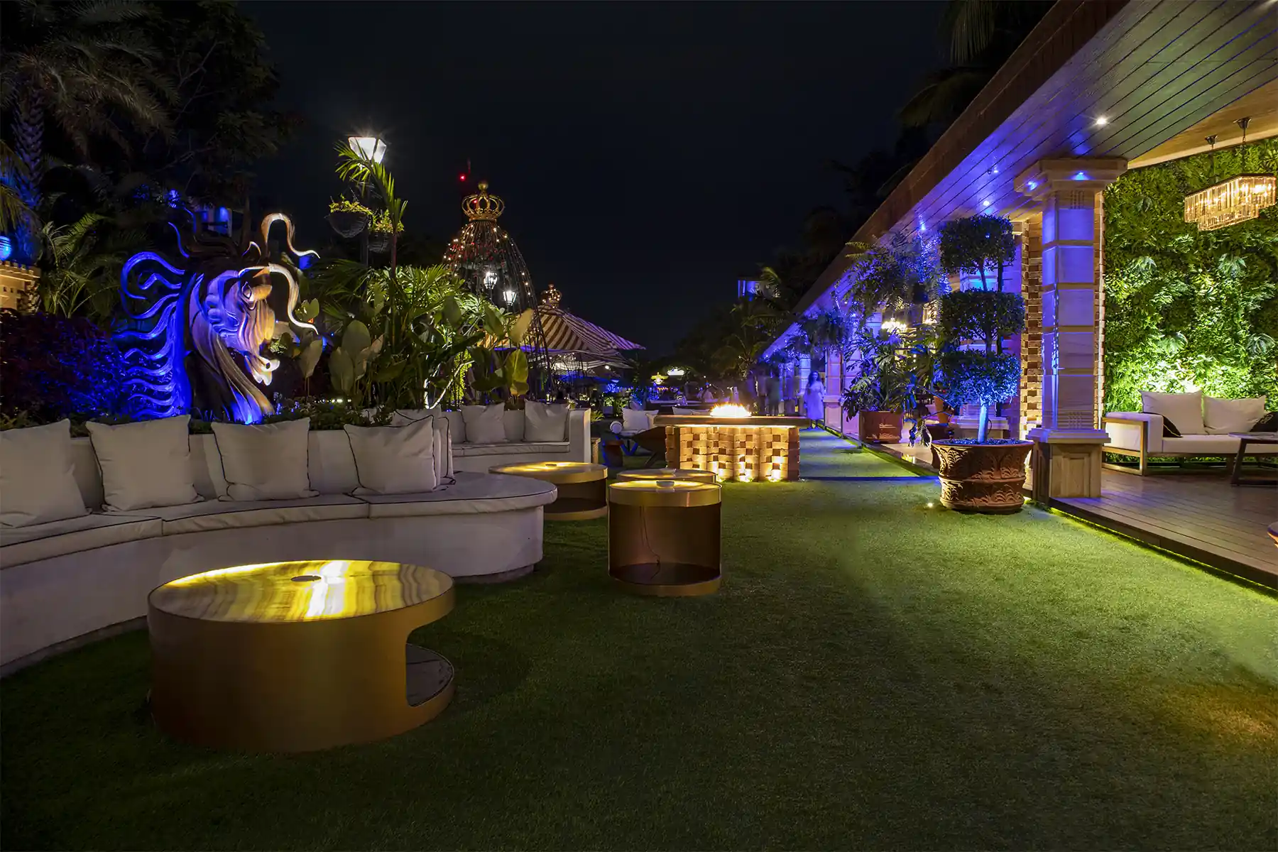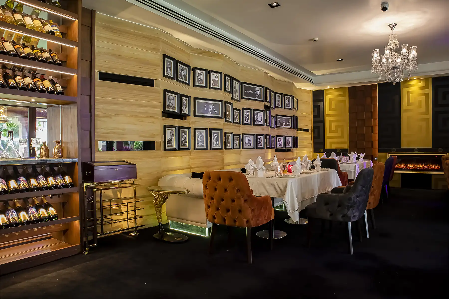 The décor is further accentuated by a Swarovski bejeweled crystal horse that takes centre stage along with muted lighting, from recessed ceiling alcoves and chandeliers.
