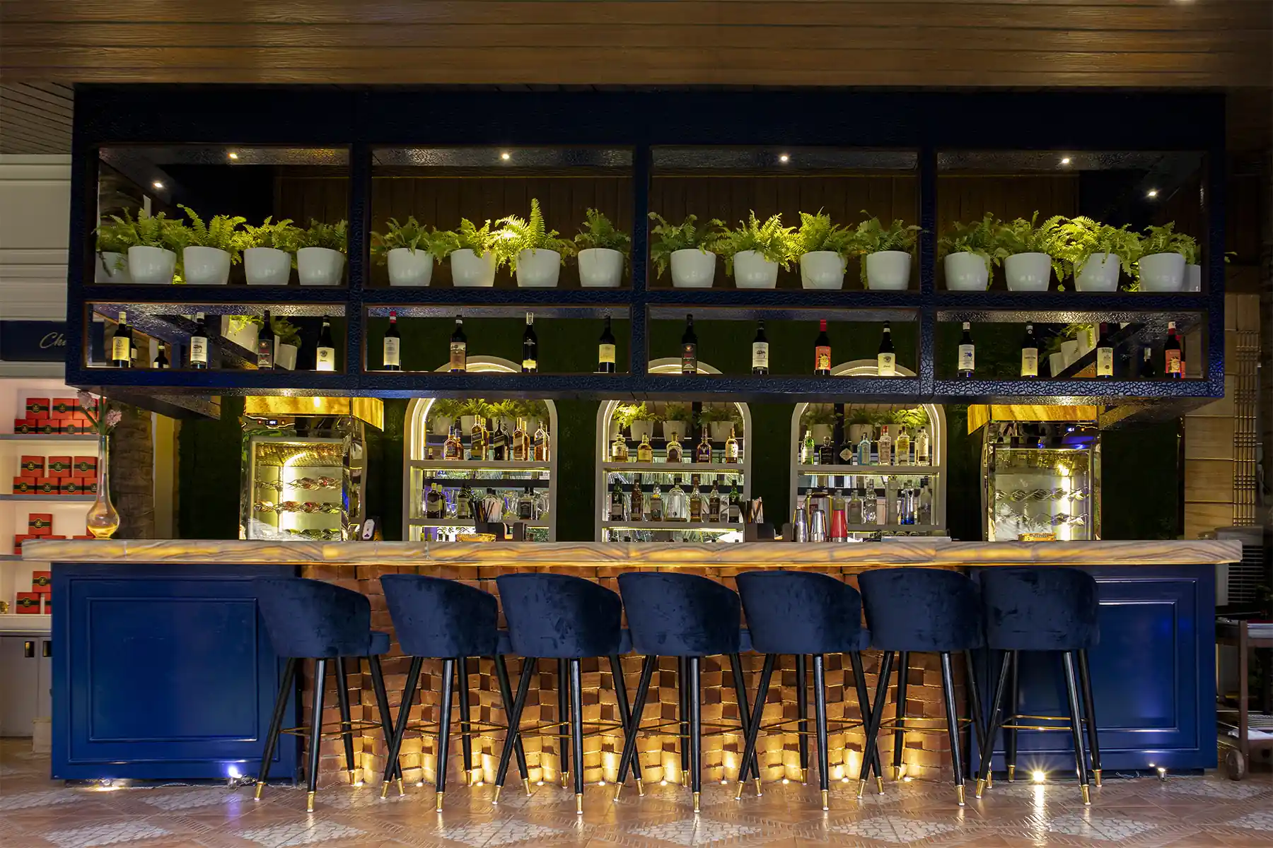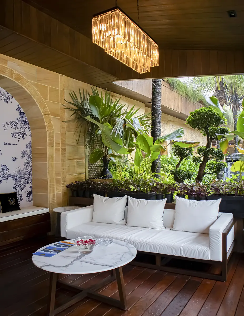 The 200-seater fine dining multi-cuisine restaurant and coffee shop is a jewel in the design assortment of Jimmy Mistry. It is adorned with large picture windows which bring in the first rays of the sun and the last throws of the moon in a 24-hour odyssey. The restaurant overlooks the cooling crystal blue waters of the swimming pool bringing with it a calming and eclectic vibe to your meals..