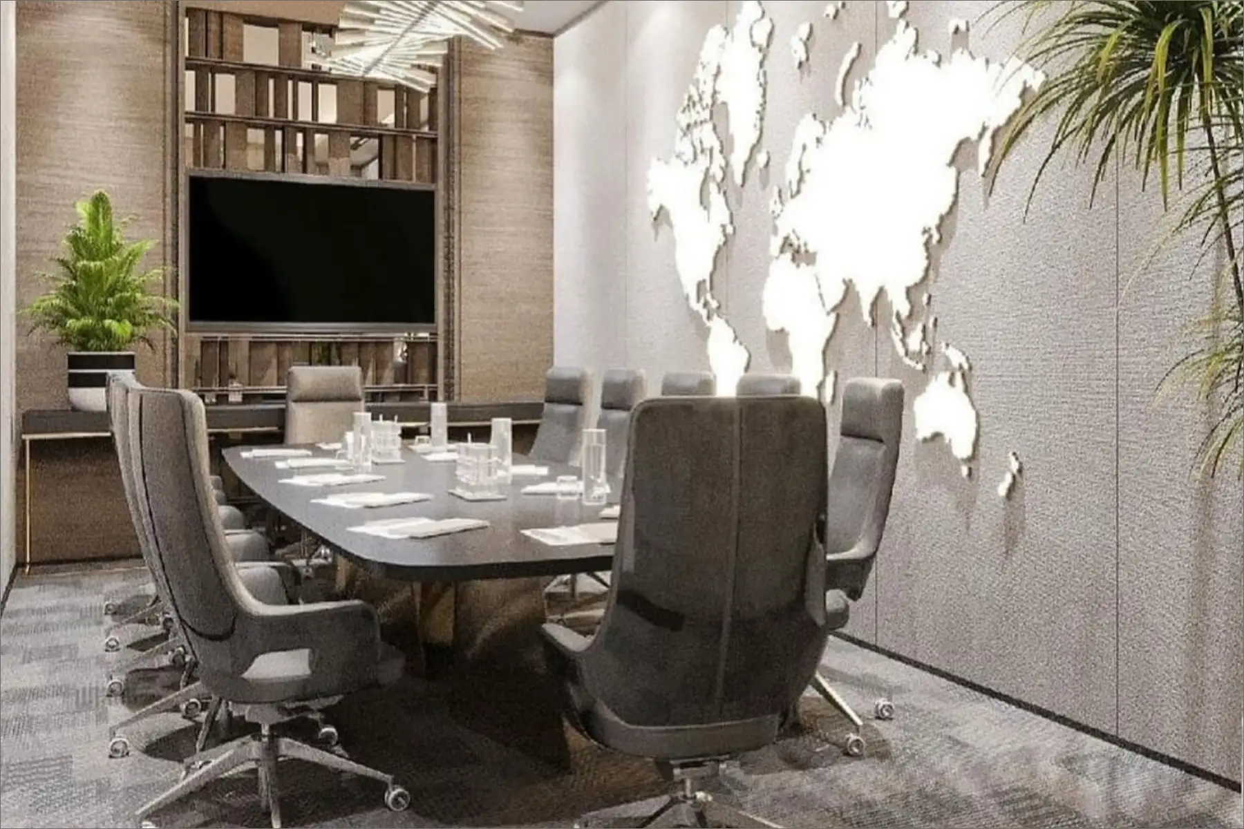 A Contemporary Office Space that Blends Modern Elegance with Natural, Serene Elements