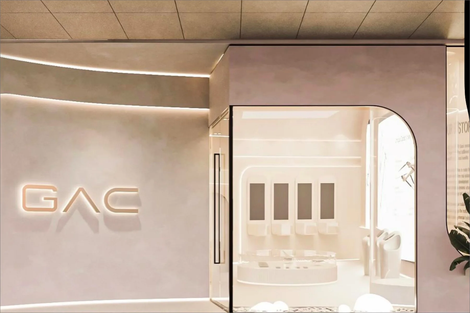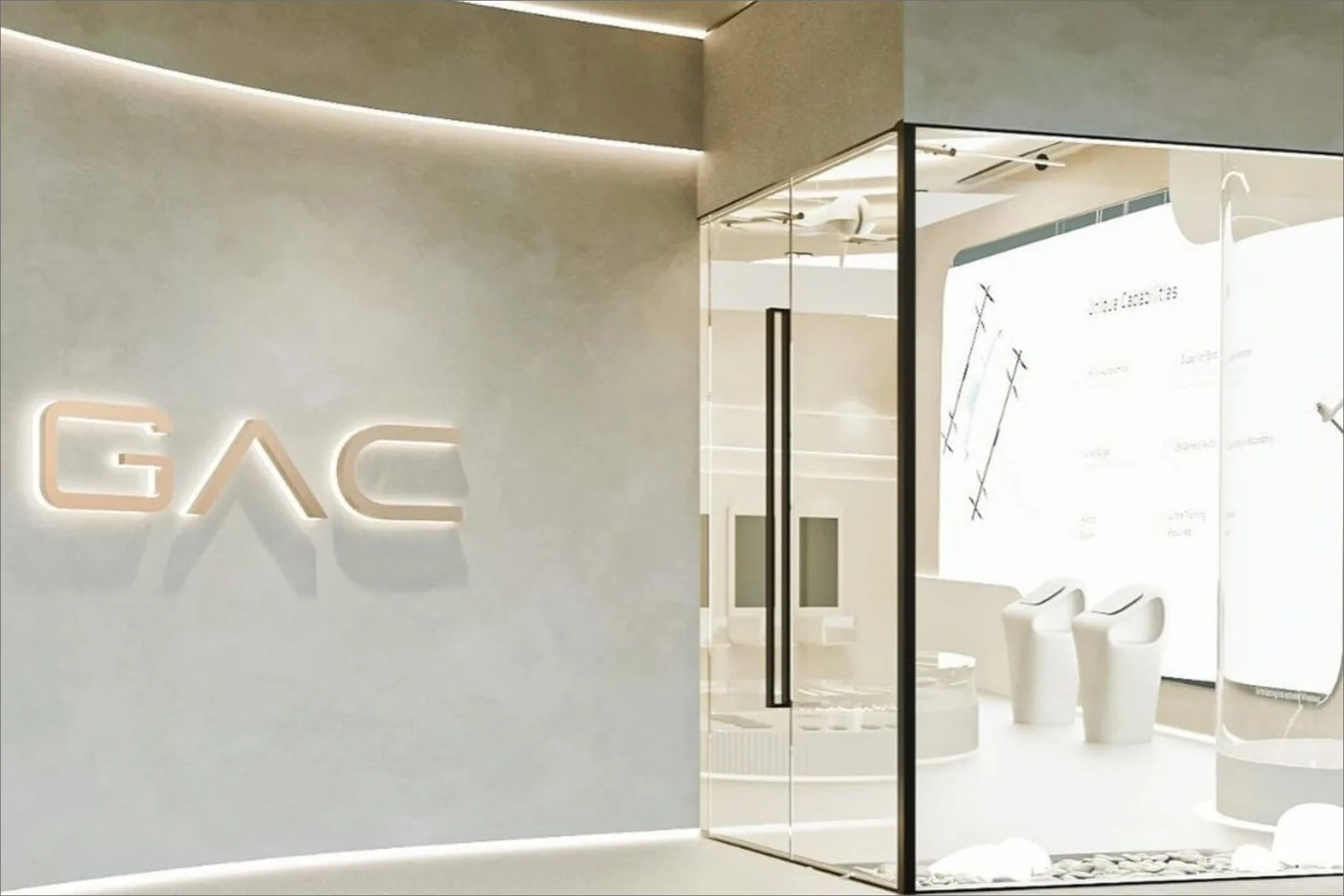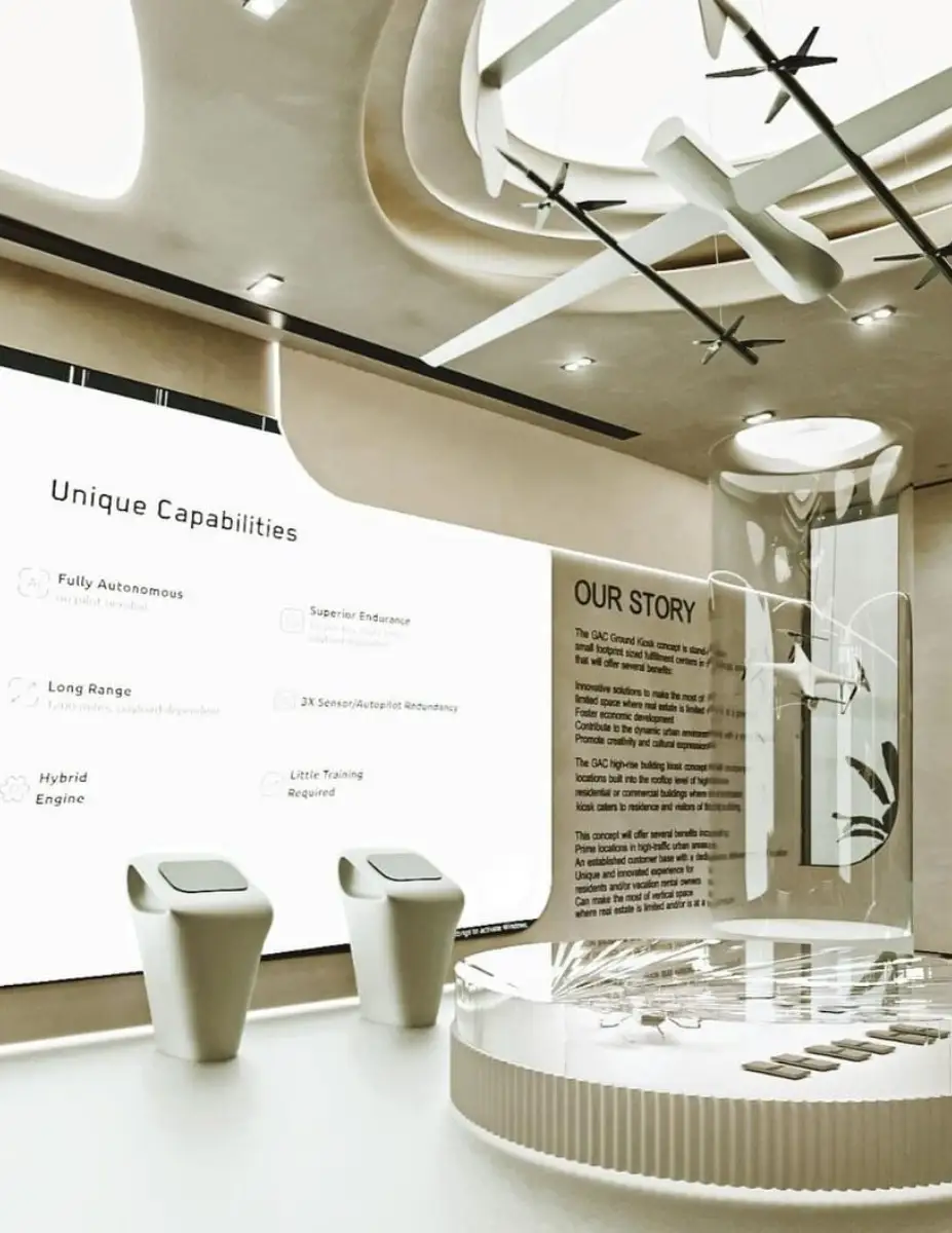 Transforming 1,216 Sq. Ft. showroom into a striking expression of brutalist minimalism at GAC Retail, Donya's design amplifies simplicity, creating immersive spaces that showcases products with understated elegance.