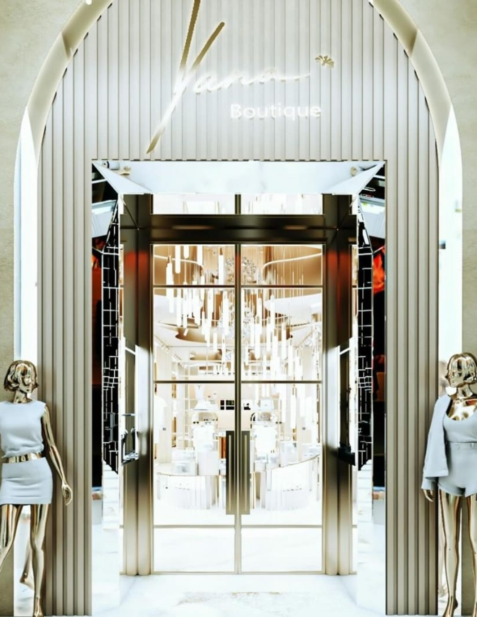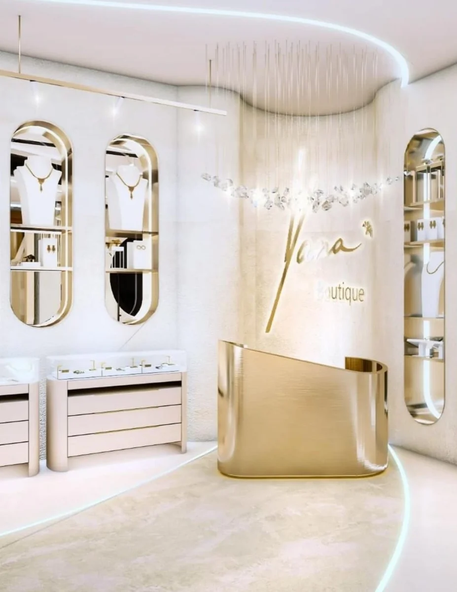A contemporary luxury design flawlessly highlights Yana Boutique’s exquisite jewelry collection in Madinat Jumeirah, crafting an environment of unparalleled elegance.