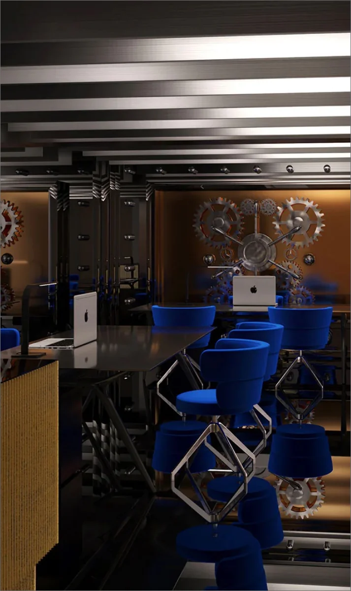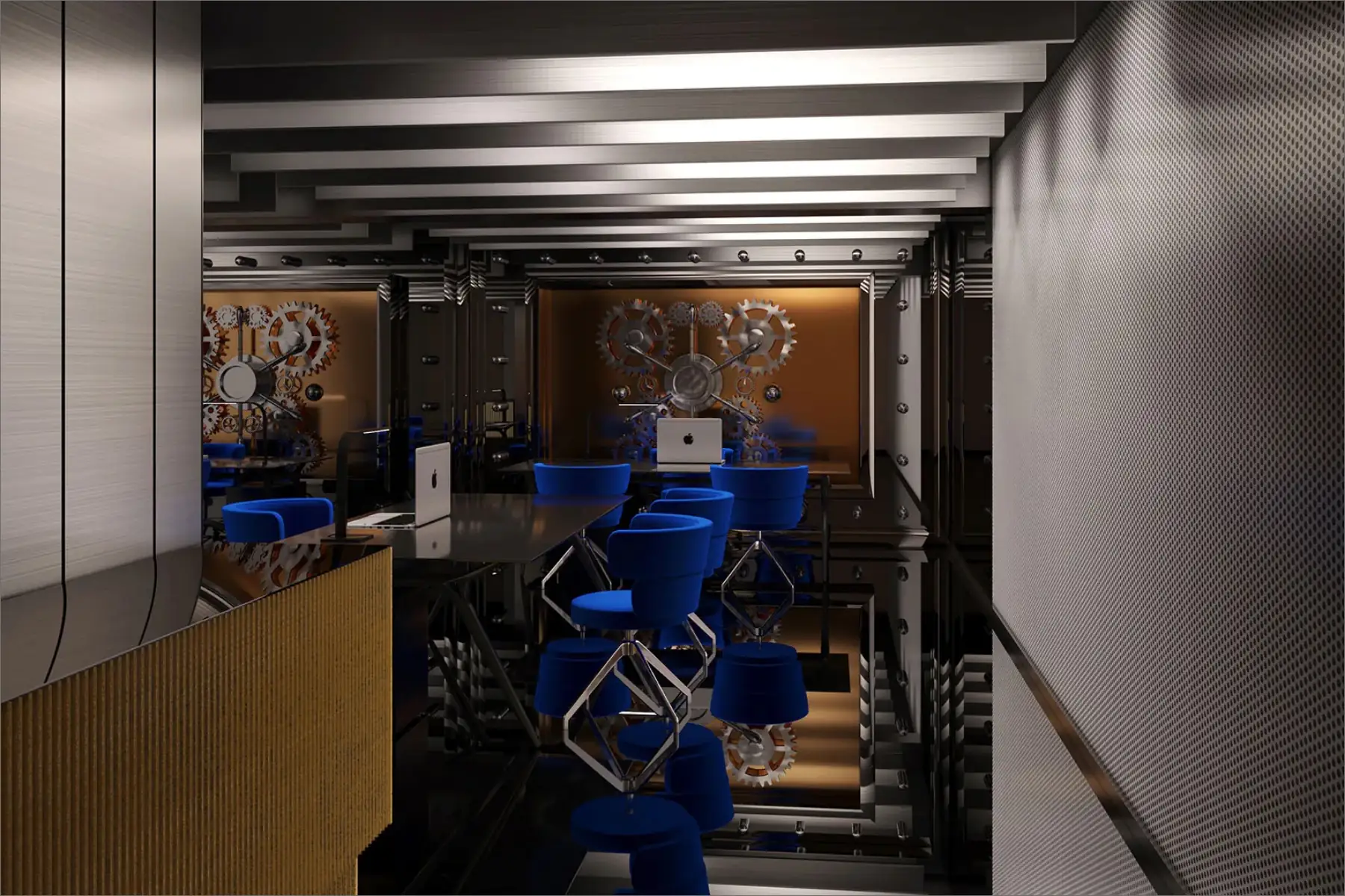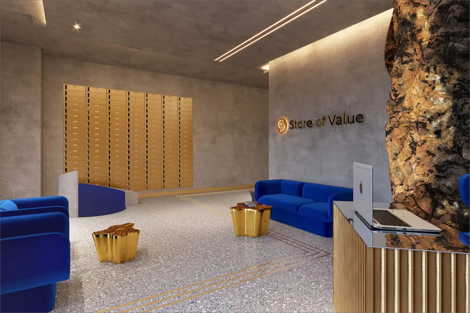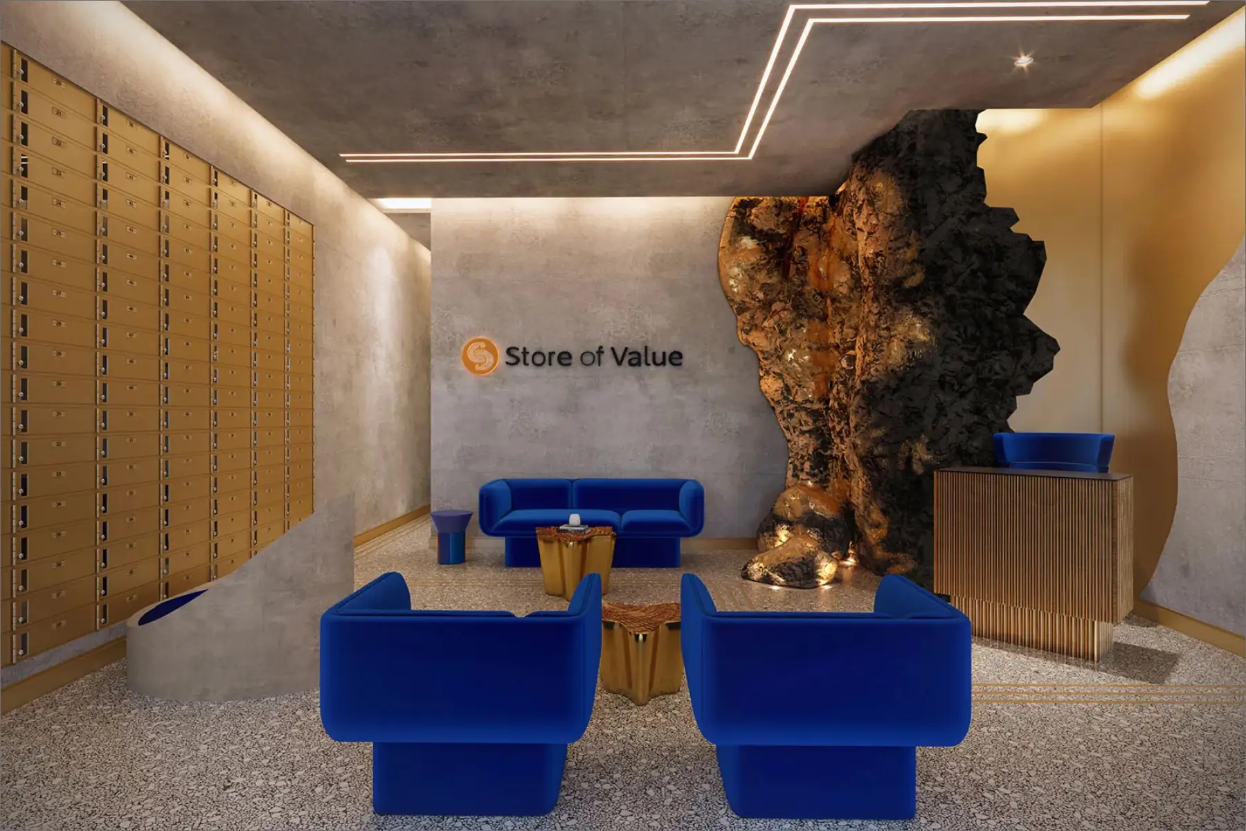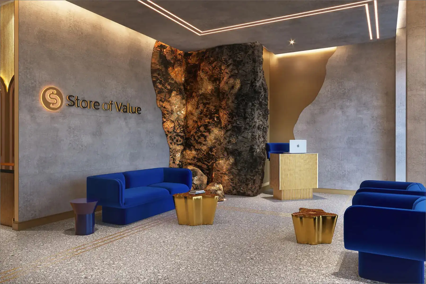 Gilded Elegance: Bold Gold Stone and Brass Accents Create a Regal Retail Atmosphere