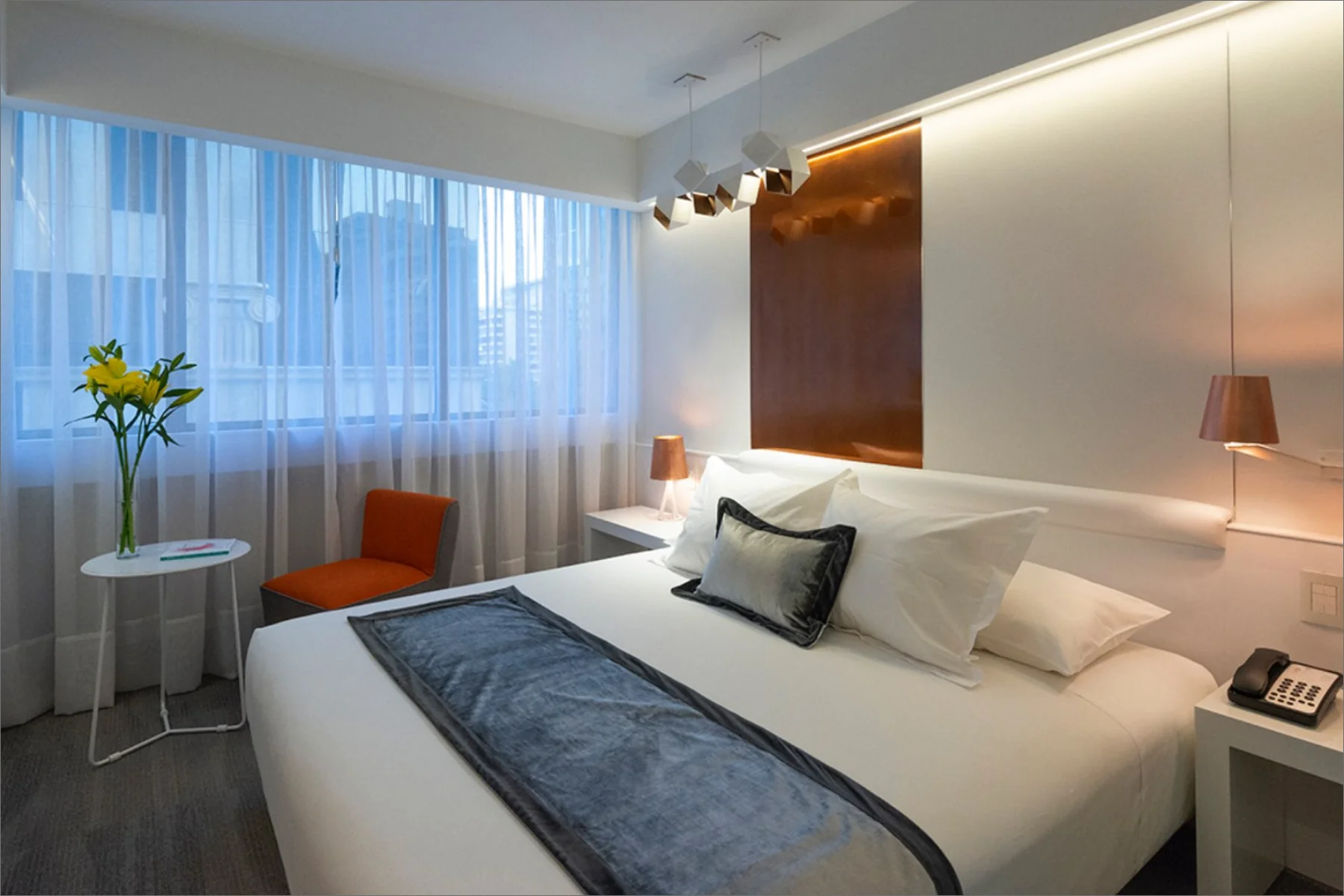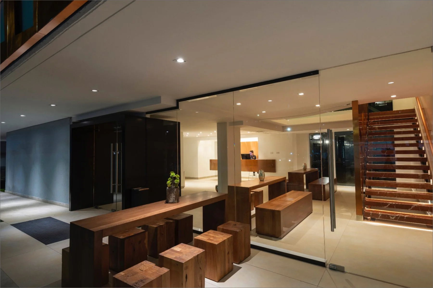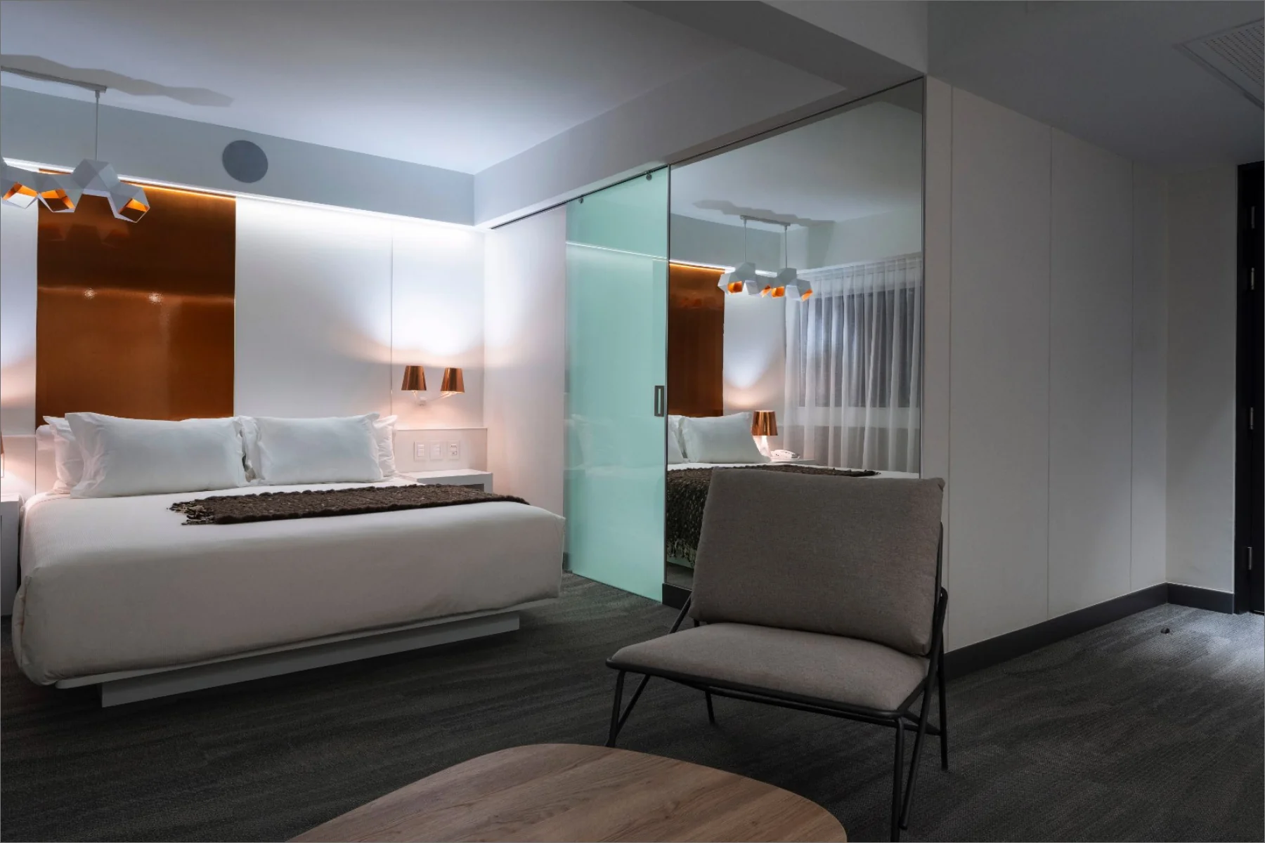 The El Director Boutique Hotel is situated in the lively urban heart of Santiago, Chile. Its design celebrates the local resources, prominently incorporating copper to create a sophisticated interplay of warmth and reflection. The airy interiors, accented with neutral-toned porcelain tiles, allow light to bounce off the copper surfaces, generating a radiant glow that contributes to an opulent and inviting ambiance. This seamless blend of elements establishes a sense of exclusivity and modernity, making it a distinctive destination for discerning travellers.