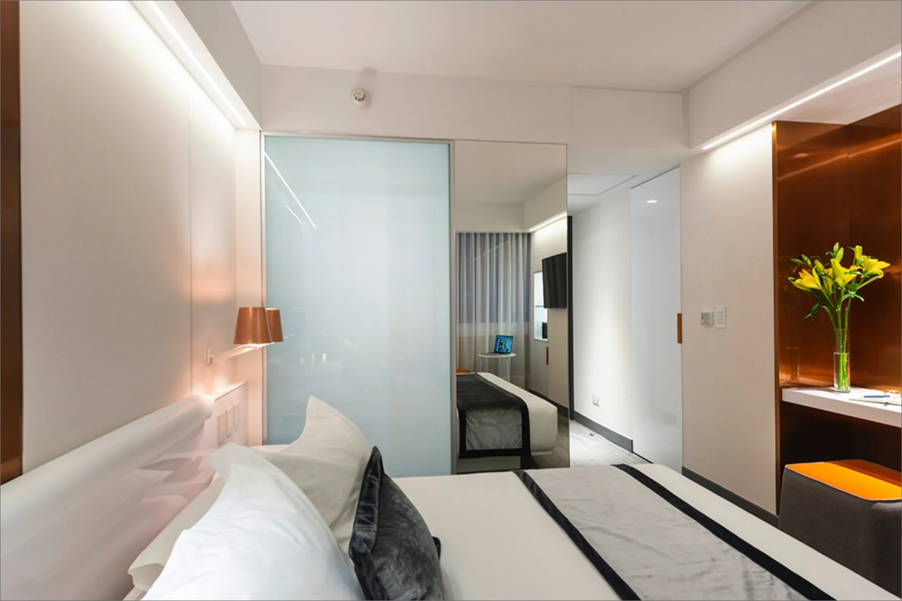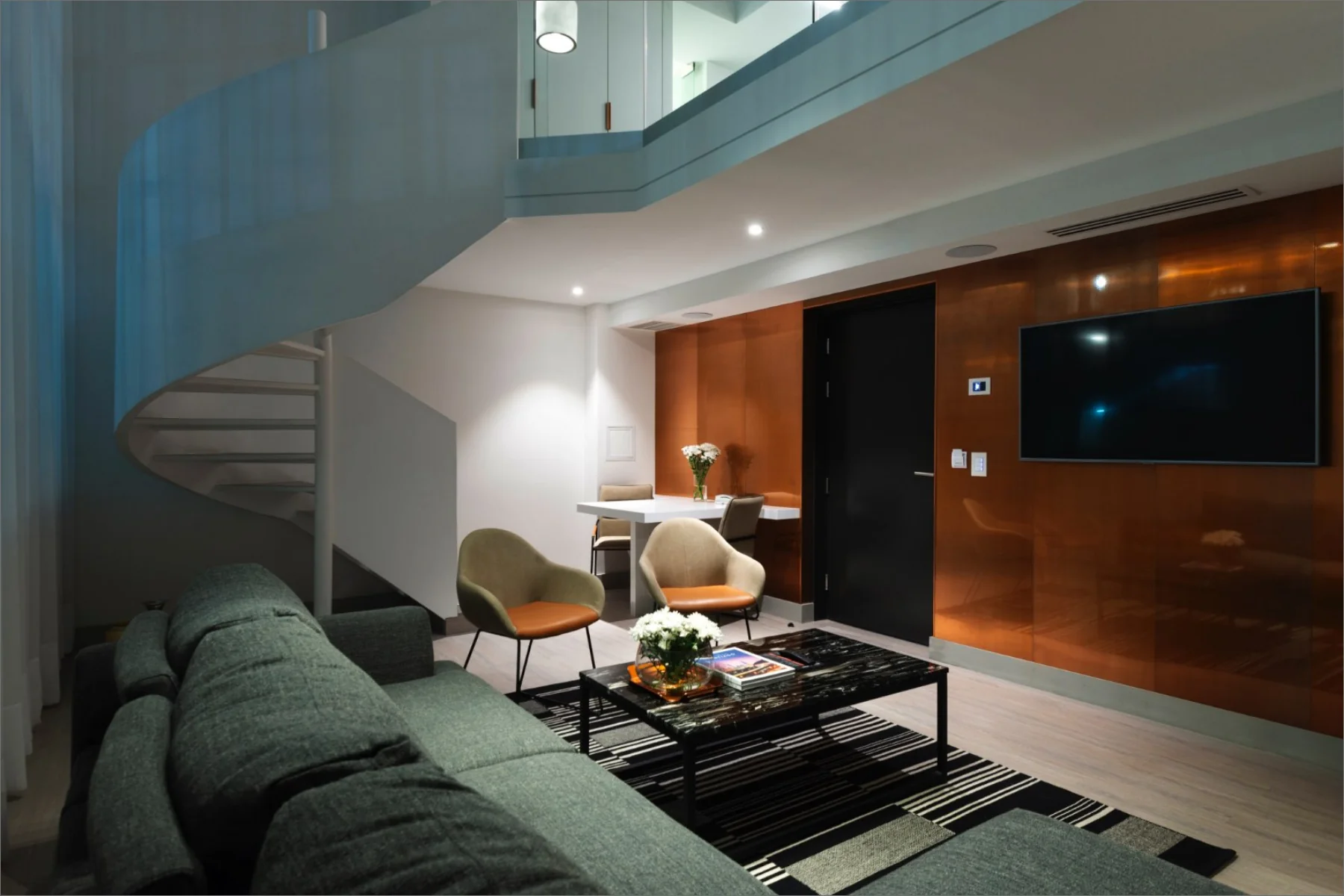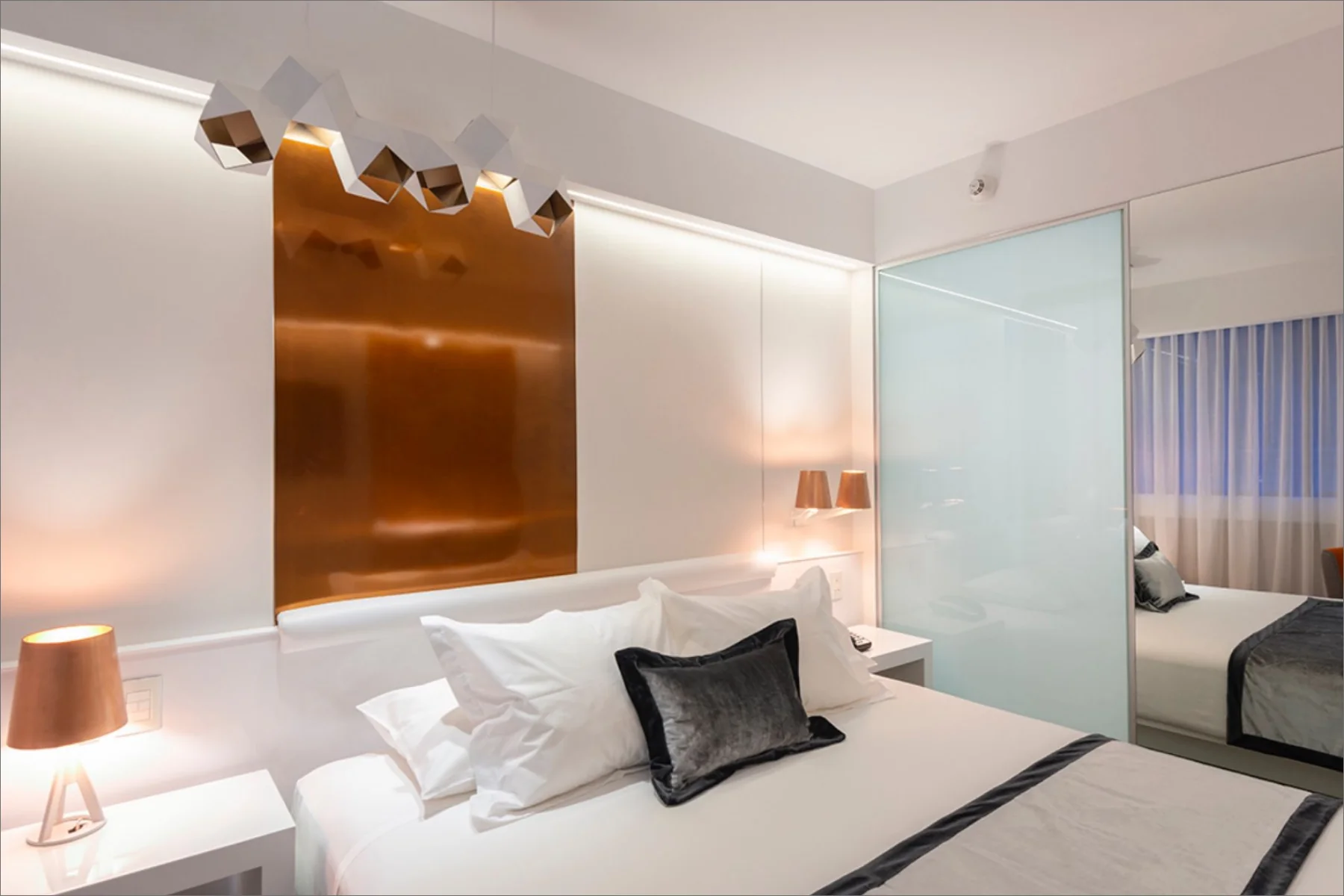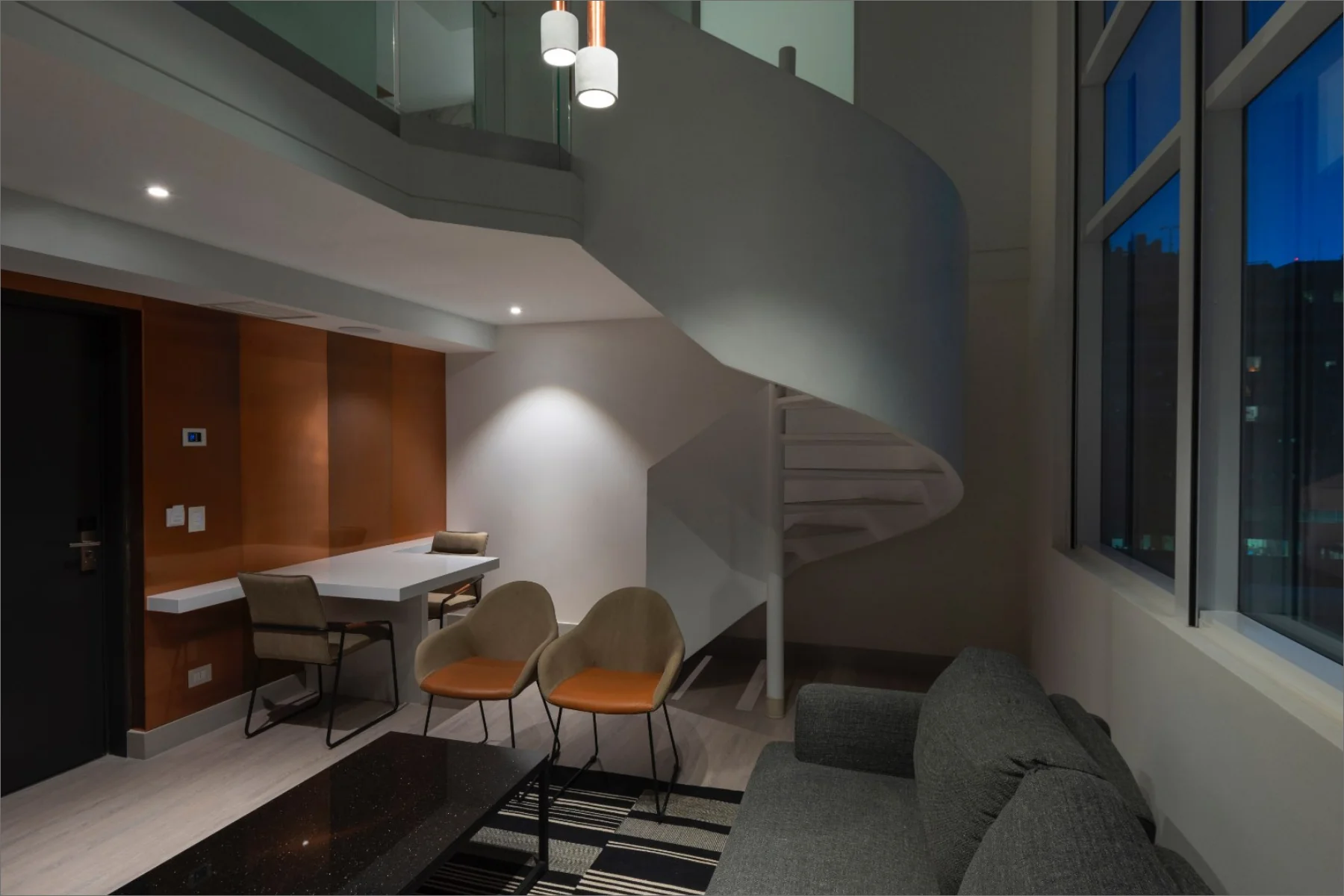 The El Director Boutique Hotel is situated in the lively urban heart of Santiago, Chile. Its design celebrates the local resources, prominently incorporating copper to create a sophisticated interplay of warmth and reflection. The airy interiors, accented with neutral-toned porcelain tiles, allow light to bounce off the copper surfaces, generating a radiant glow that contributes to an opulent and inviting ambiance. This seamless blend of elements establishes a sense of exclusivity and modernity, making it a distinctive destination for discerning travellers.