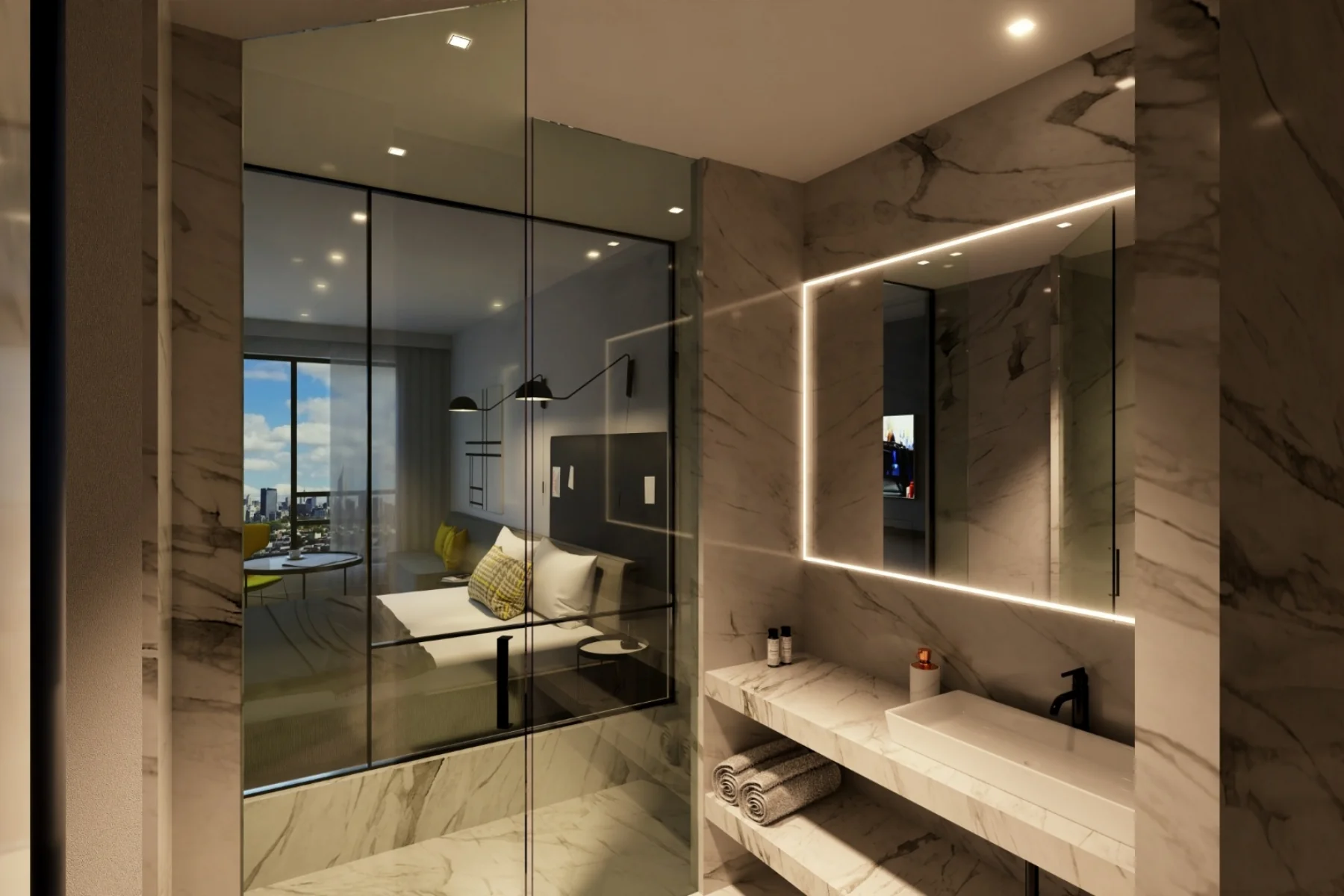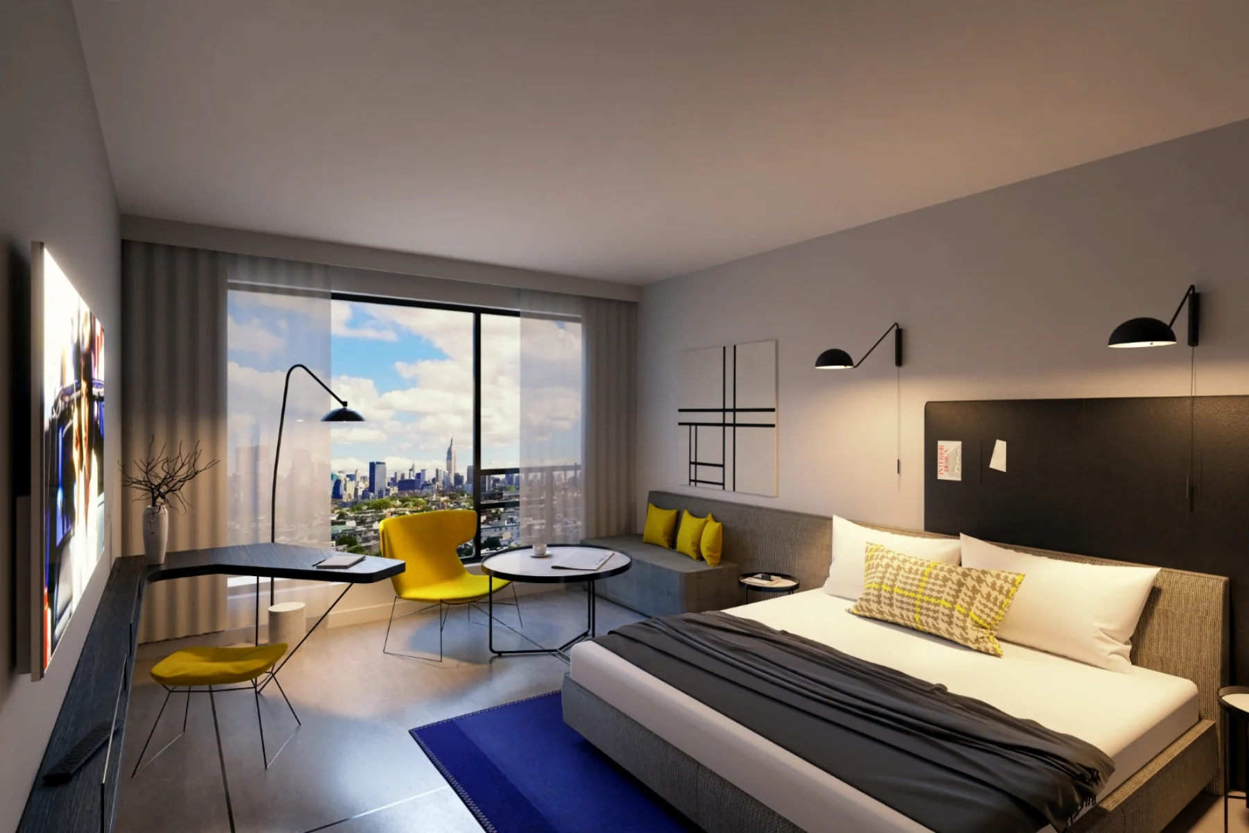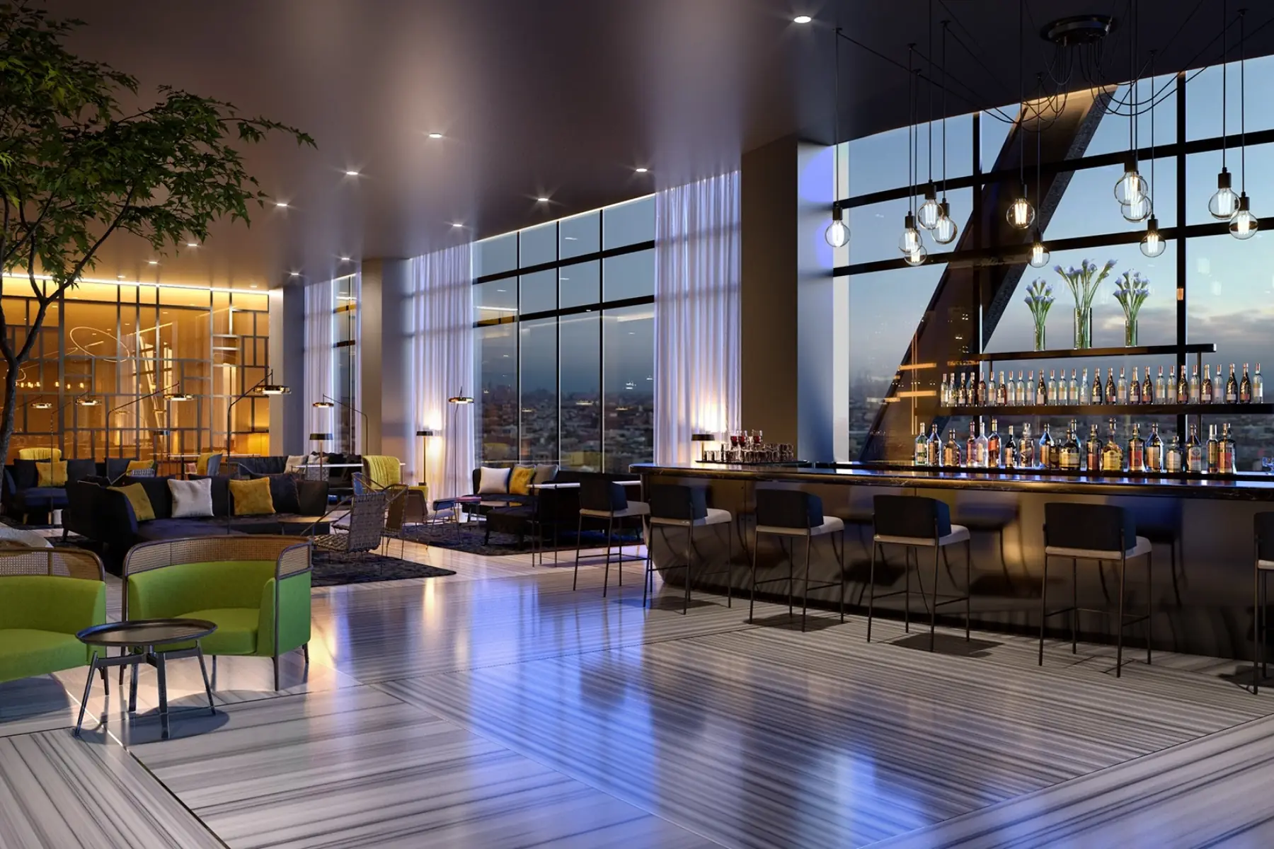 Located in the American Dream Mall in New Jersey, the new Autograph by Marriott hotel showcases an urban style that is both casual and family-friendly. Every area, from the guest rooms to the lobby, restaurant, event spaces, and rooftop bar/lounge, is designed to harmonize the vibrant energy of New York City with the tranquil warmth of New Jersey.