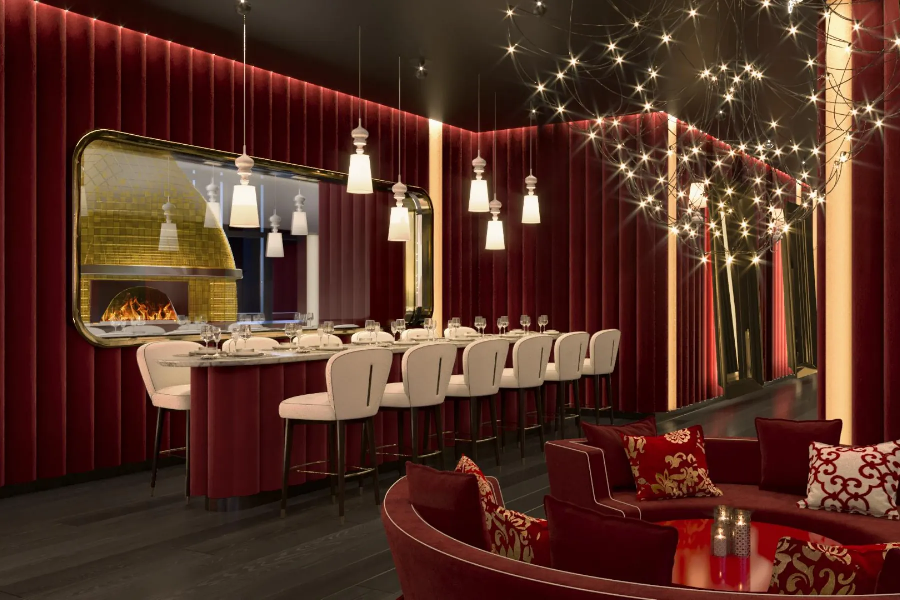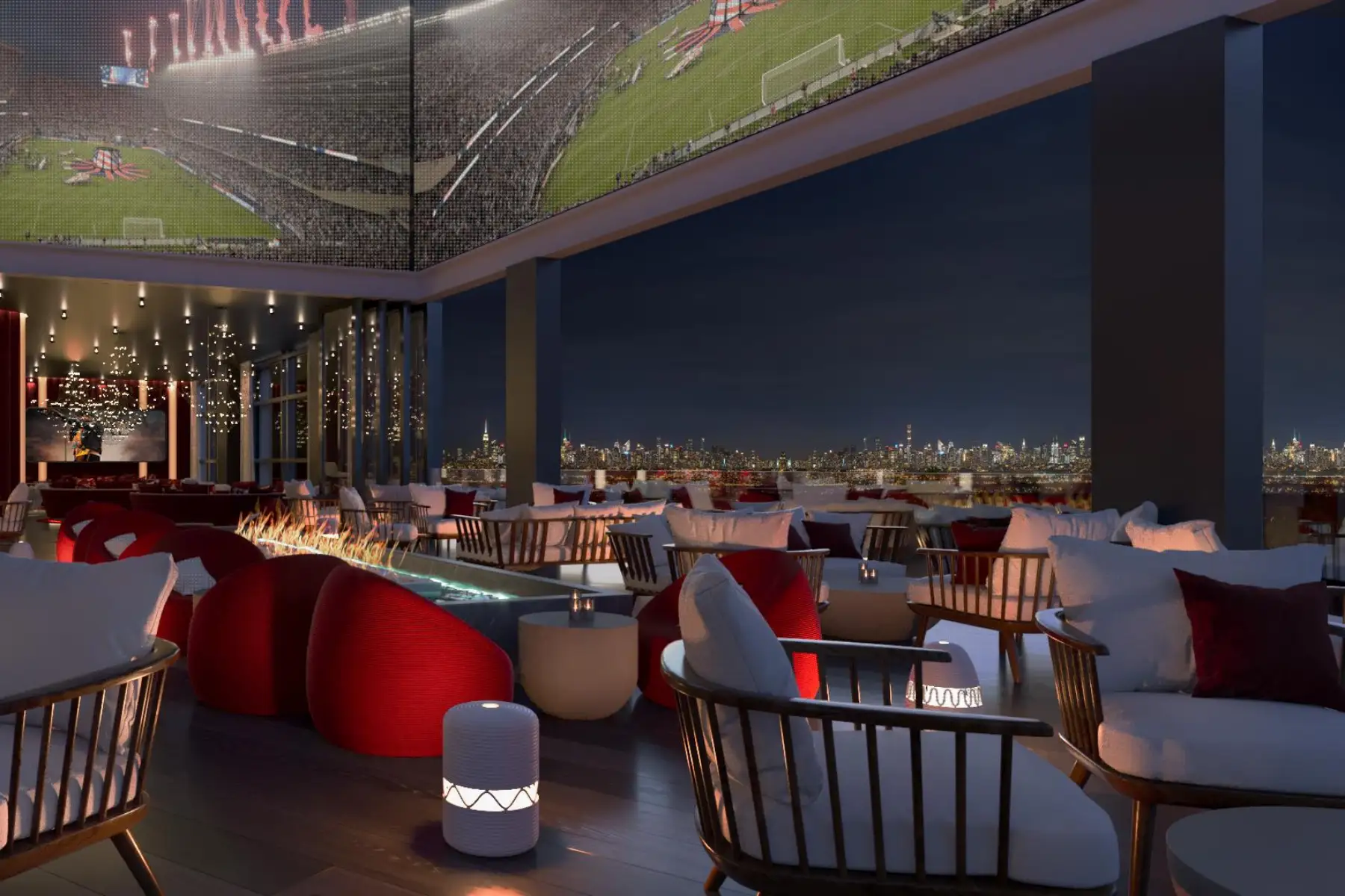 Offering a contemporary twist on retro style, this rooftop restaurant and bar lounge tops the newest BYOND Hotel in New Jersey. With stunning views of the Meadowlands Sports Complex on one side and the iconic New York City skyline on the other, this vibrant rooftop destination takes center stage in a dramatic sensory experience.