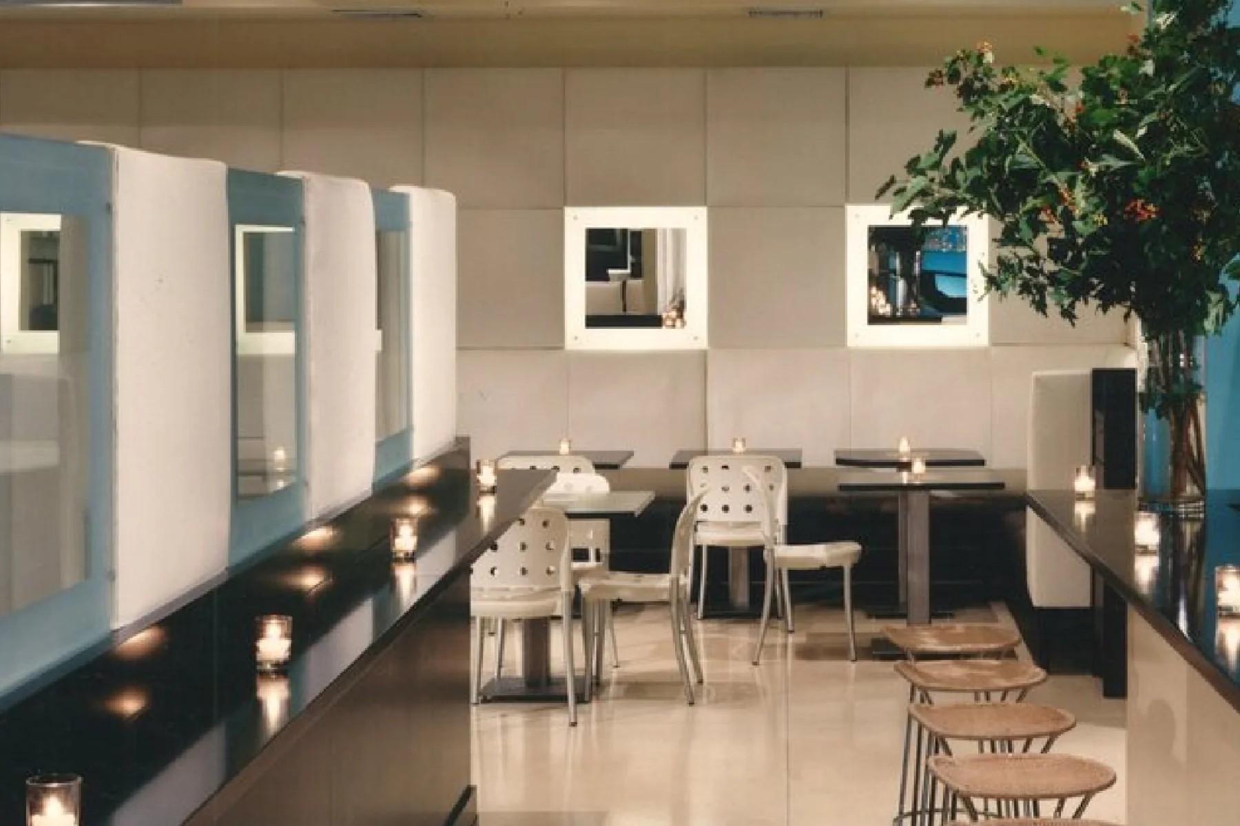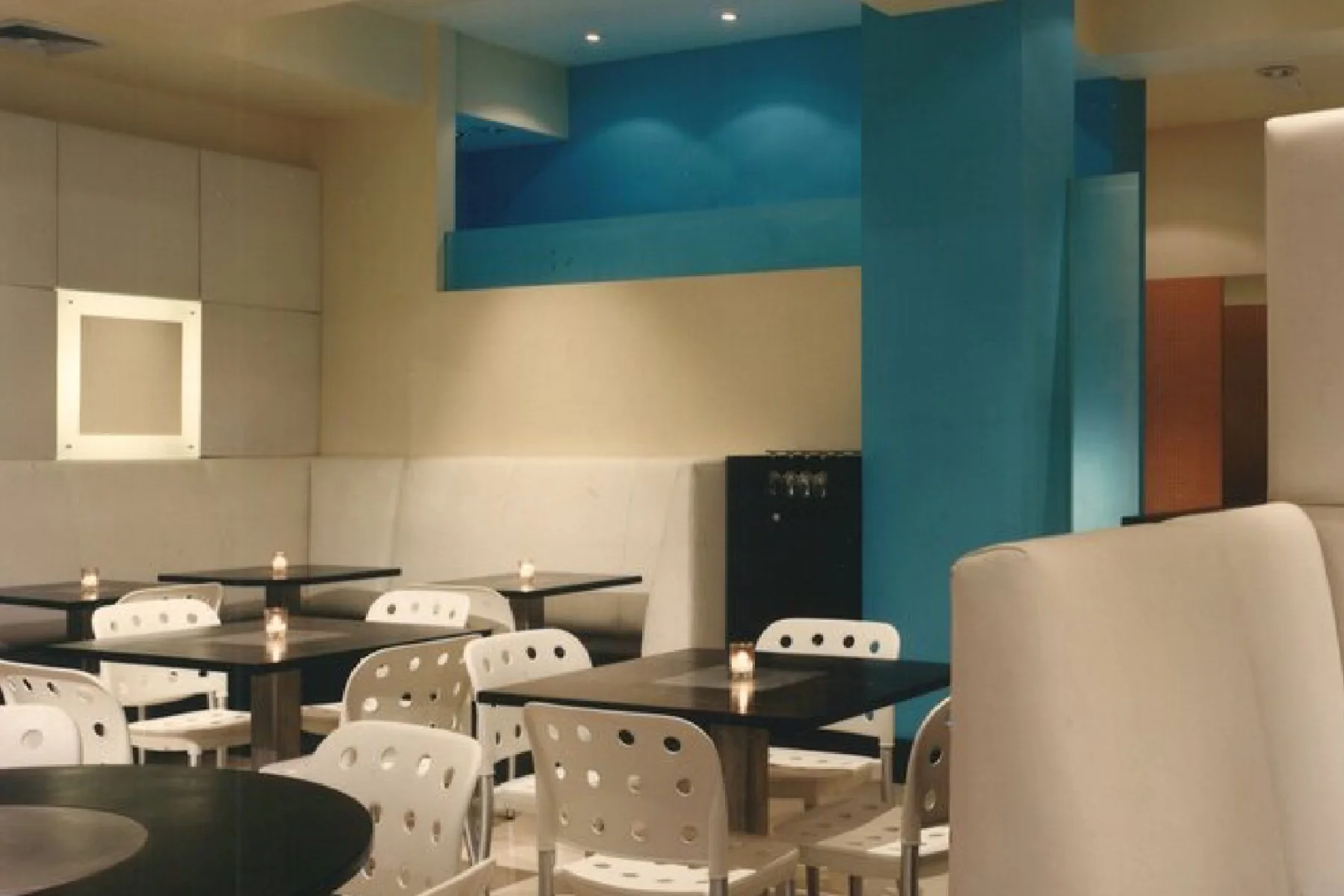 Originally designed 20 years ago, this iconic Chelsea establishment remains as trendy as on its opening day, now featuring a fresh look for a cafeteria/diner. The modern and unique design combines simplicity with warmth. Its entire facade consists of garage doors that open to the street, seamlessly blending indoor and outdoor dining to meet today’s market demands.
