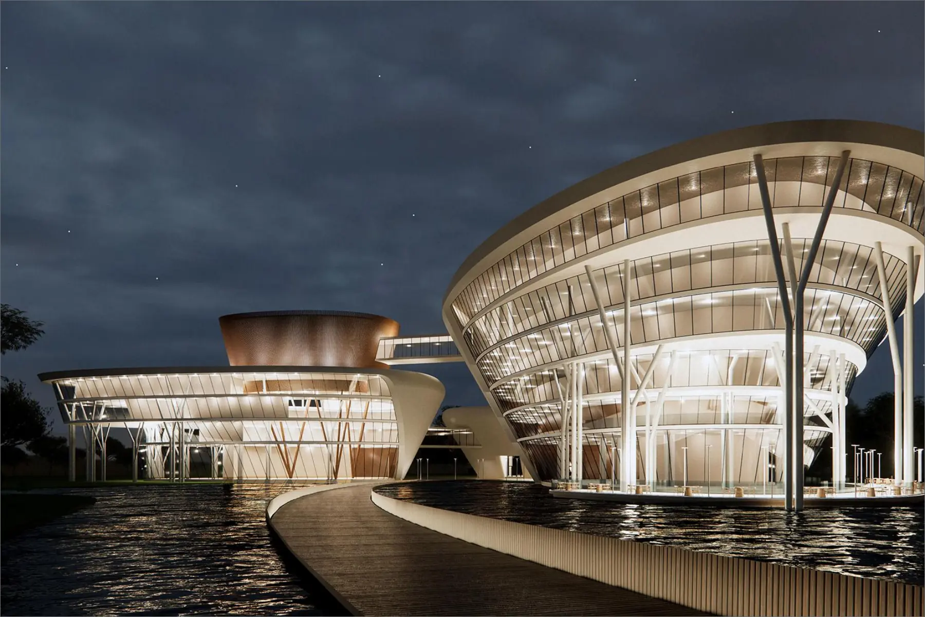 This conceptual design for an aerospace company's offices, situated in an iconic building, draws inspiration from its natural surroundings and offers stunning views of Lake Austin. The organic design is centered around the Austin Rain Lily flower, which symbolizes new beginnings, rebirth, and the promise of future discoveries and hope.