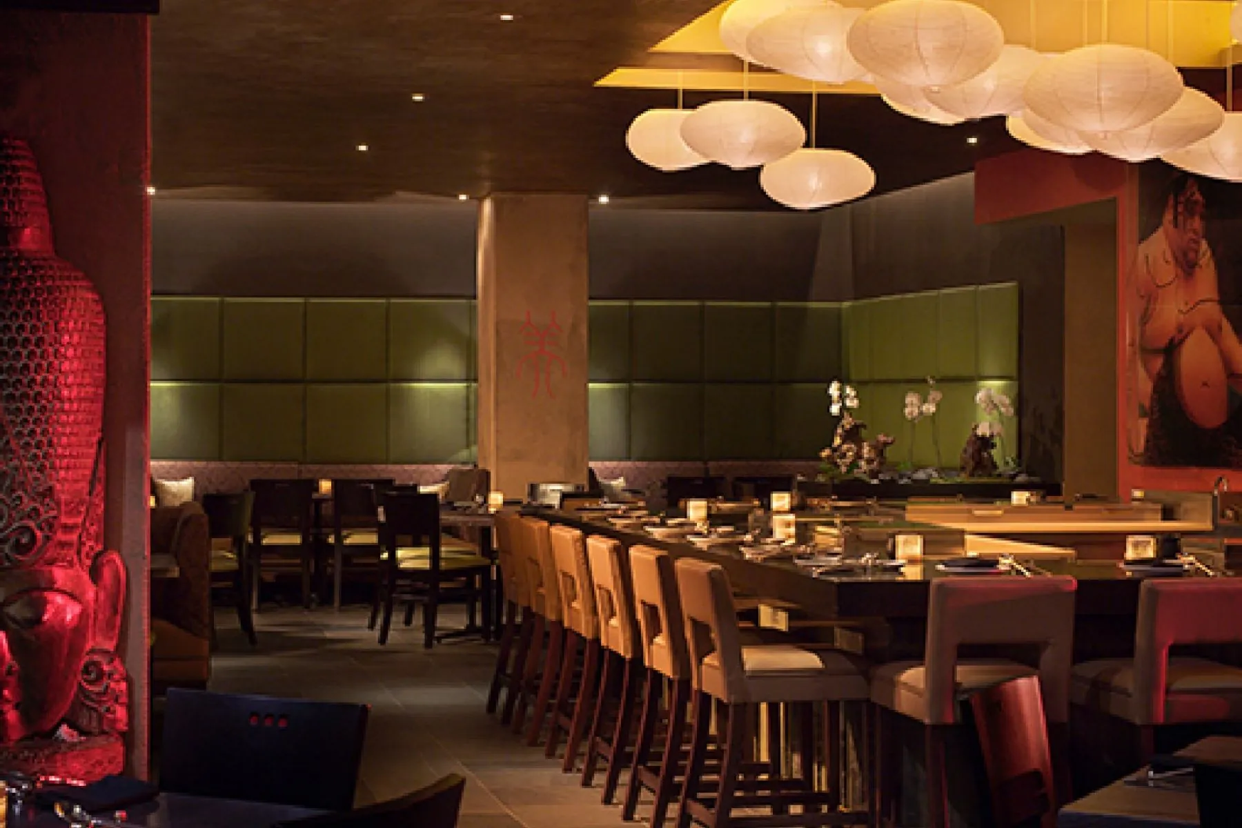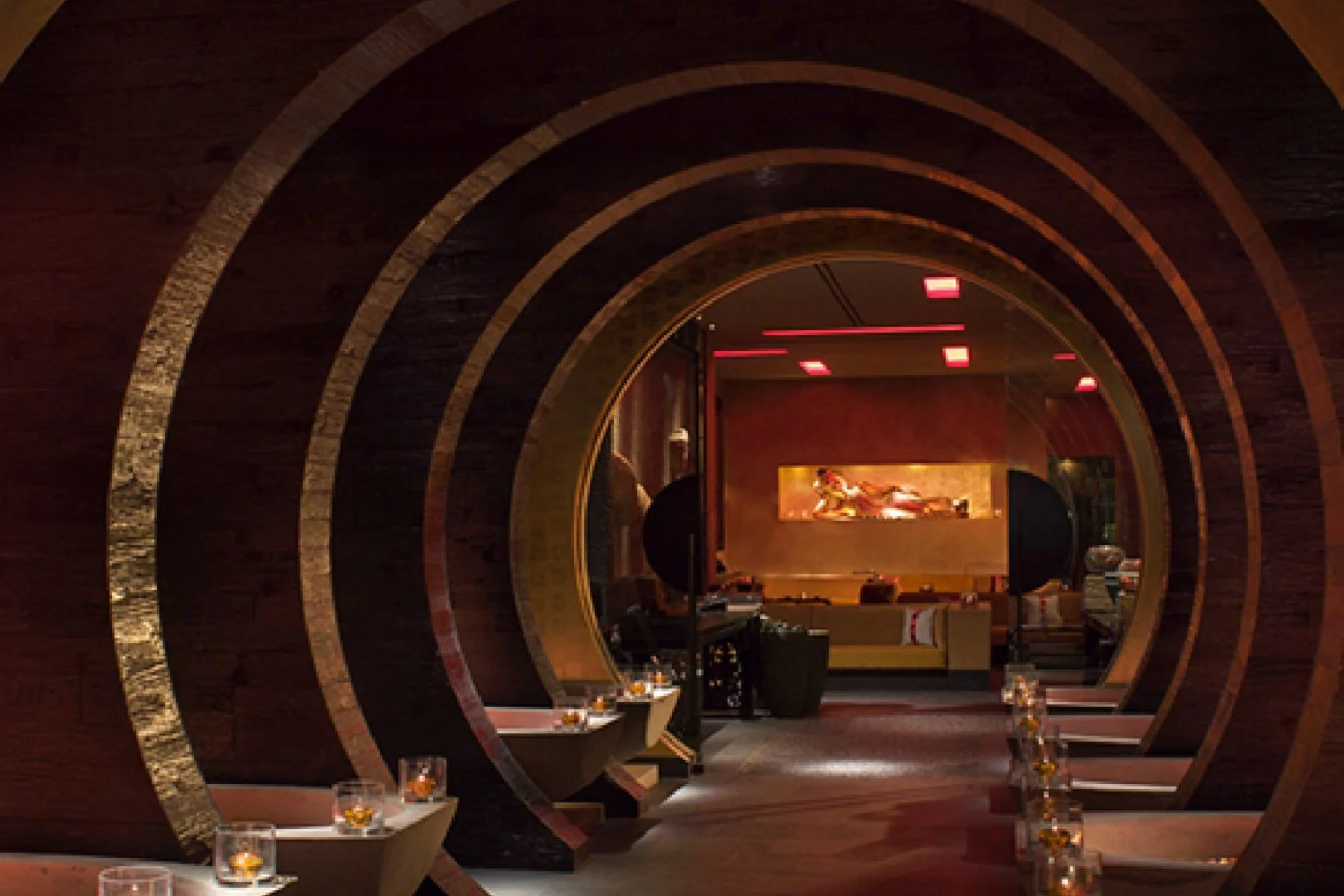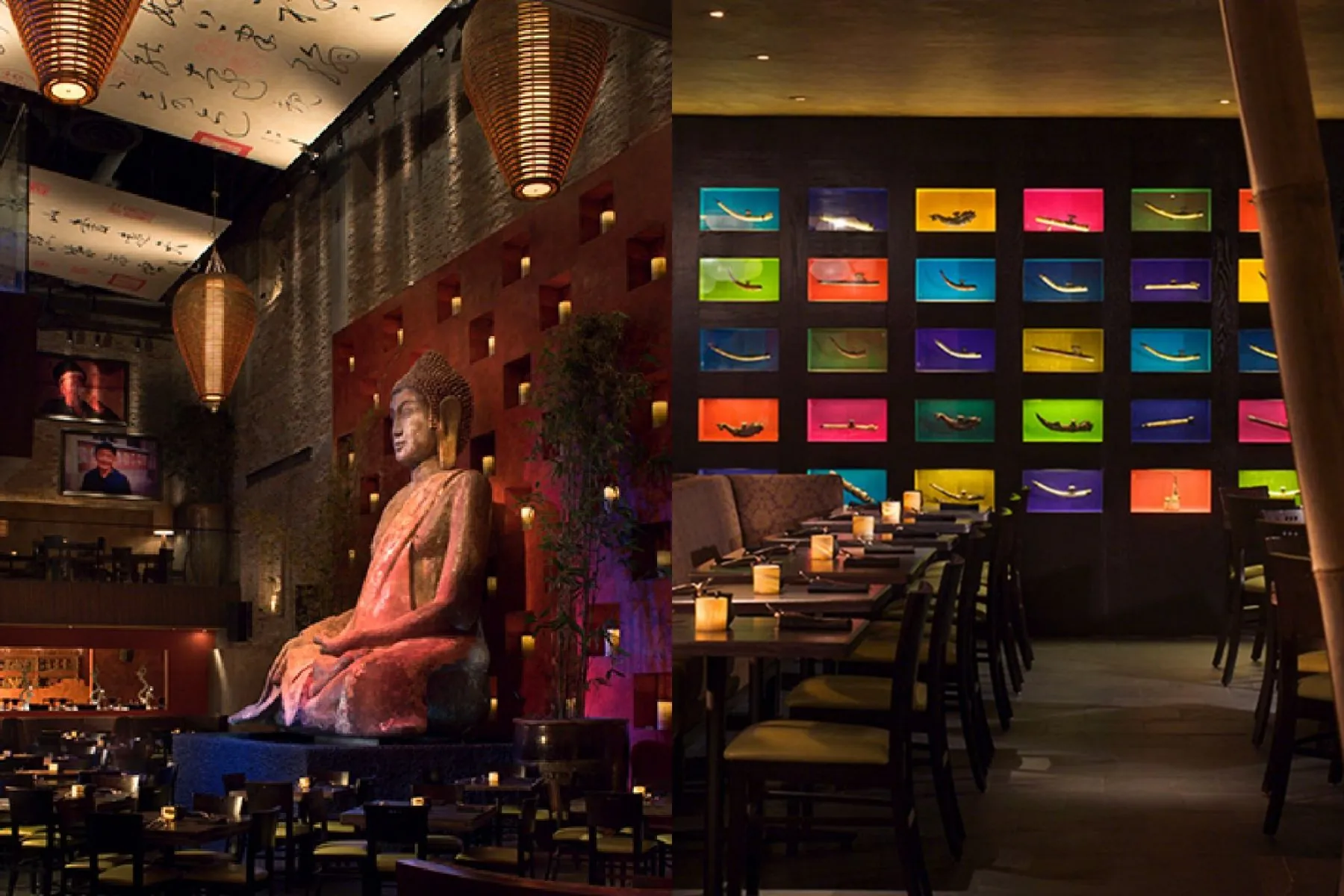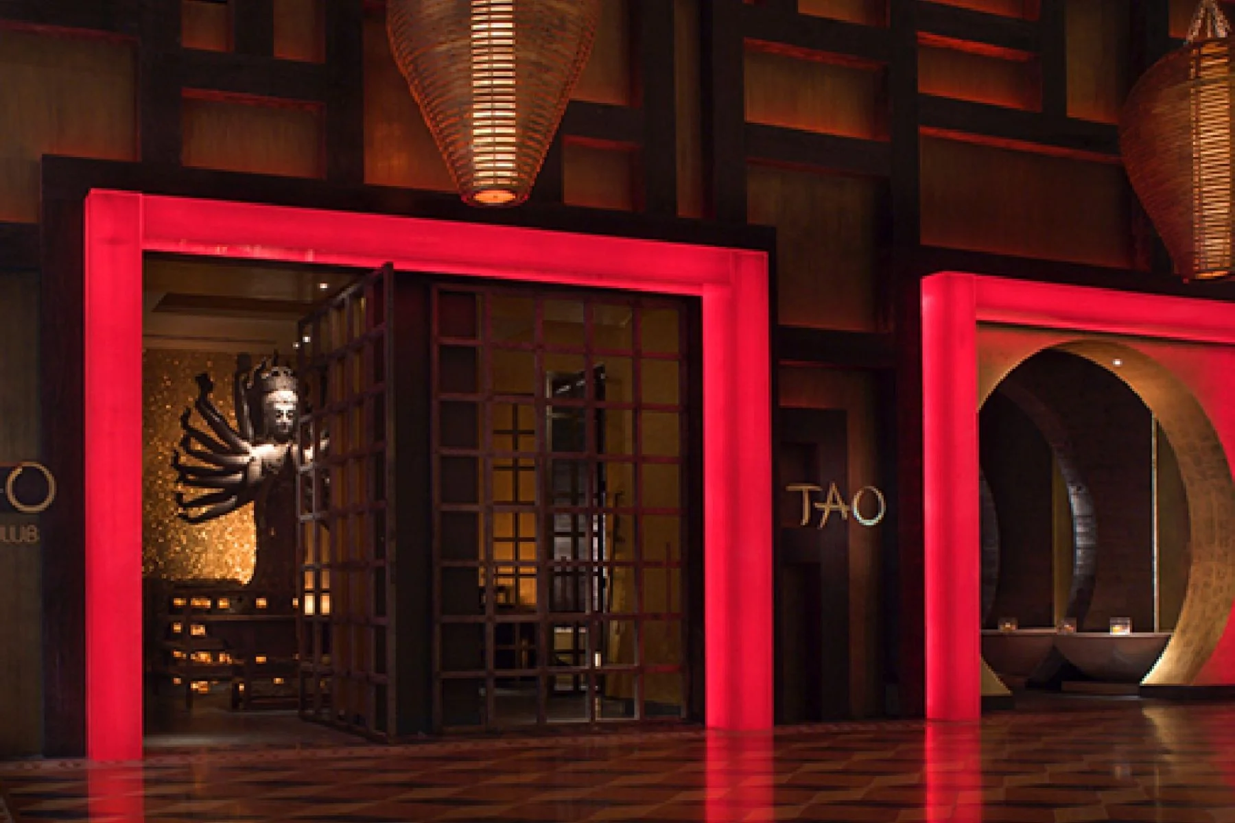 Tao at the Venetian takes the concept to a new level, outshining its New York City counterpart in both scale and experience. The entrance features two striking red thresholds that reinterpret Southeast Asian décor, complemented by elegant Buddhist statues. Inside, guests are welcomed through circular, Chinese-inspired portals that lead to dynamic dining areas. This venue transforms dining and nightlife into an extraordinary theatrical experience.