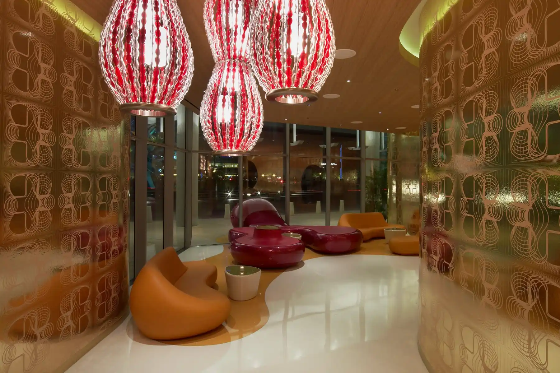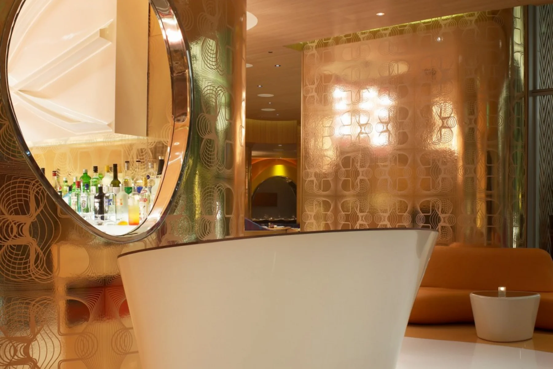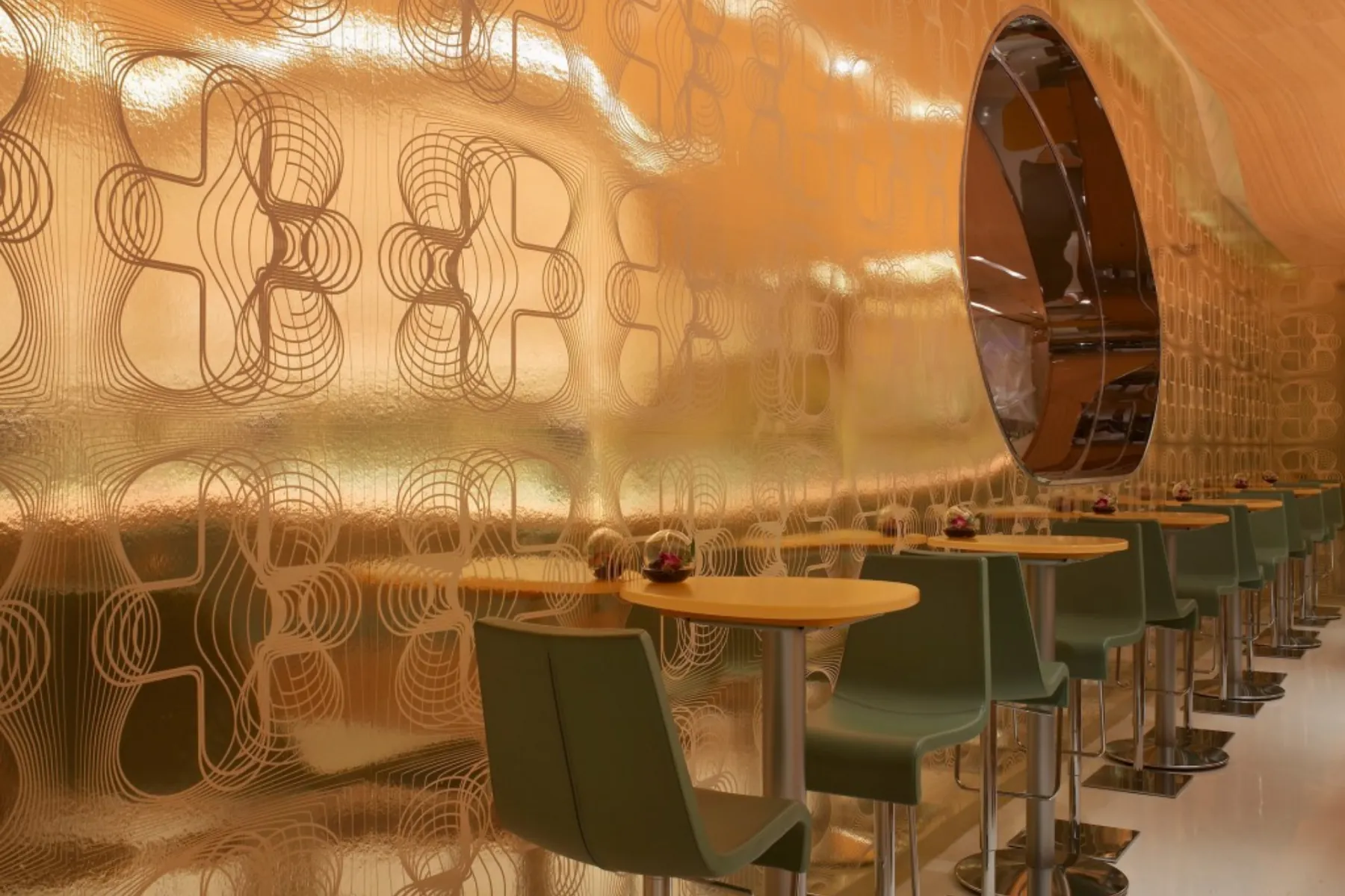 Silk Road offers a rich multicultural experience, blending the Mediterranean Spice and Trade Market with the plush opulence of the Merchant Route. Its inviting bar features sculptural fiberglass seating that flows into the outdoor space, creating a seamless transition.