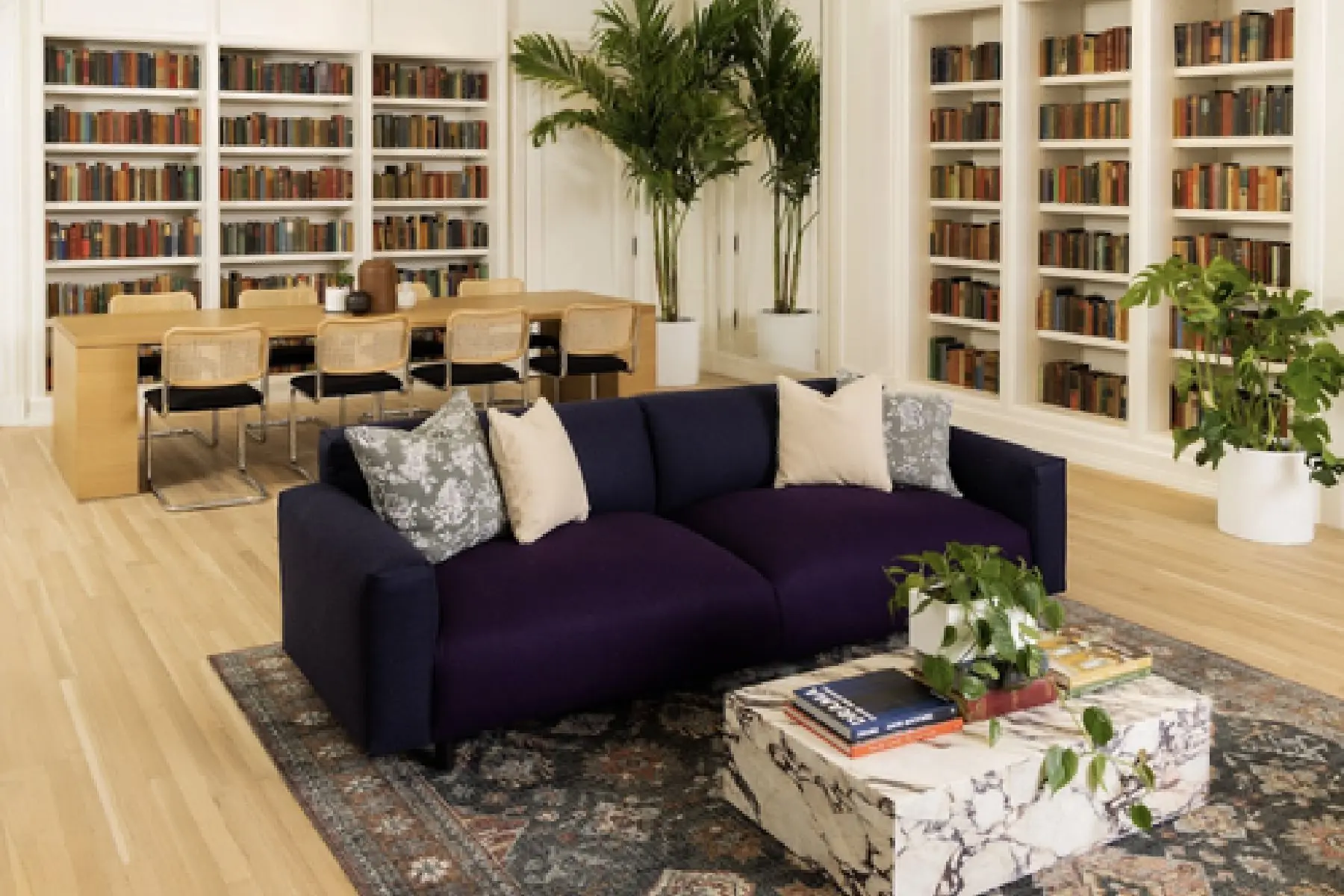 Repurposing five Saks-branded co-working hubs across New York City, Manhasset, Greenwich, and Eastchester through an adaptive reuse project. Collaborating with the in-house architectural team, Laetitia transformed former retail spaces into amenity-rich environments, using Saks' existing furniture library to create inviting and functional workspaces.