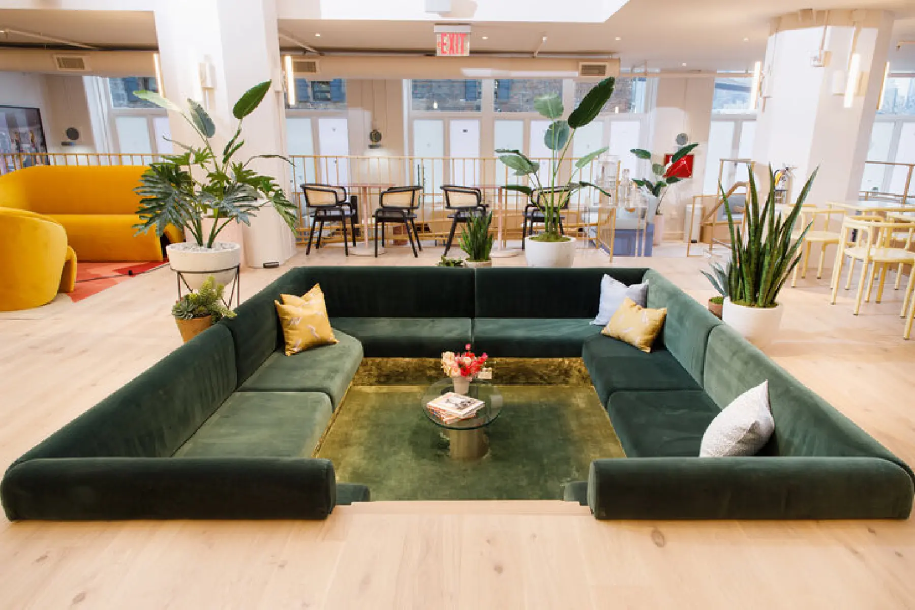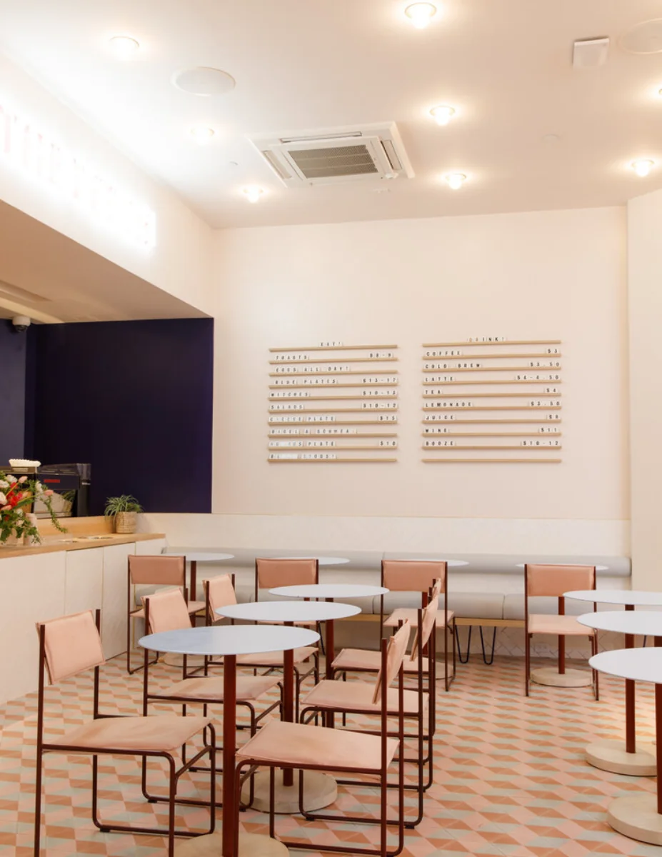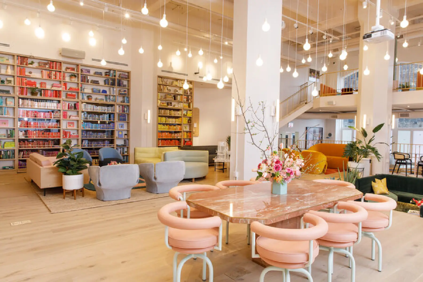 Preserving the industrial character of a former tape factory while playfully reinterpreting its layout, the interior combines preserved surfaces with rich, contemporary colours and textures. A central double-height space offers varied seating areas for large events or smaller, focused meetings, facilitating transitions from social interaction to quiet retreat.