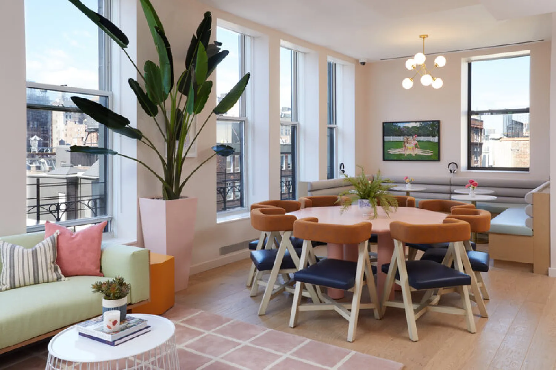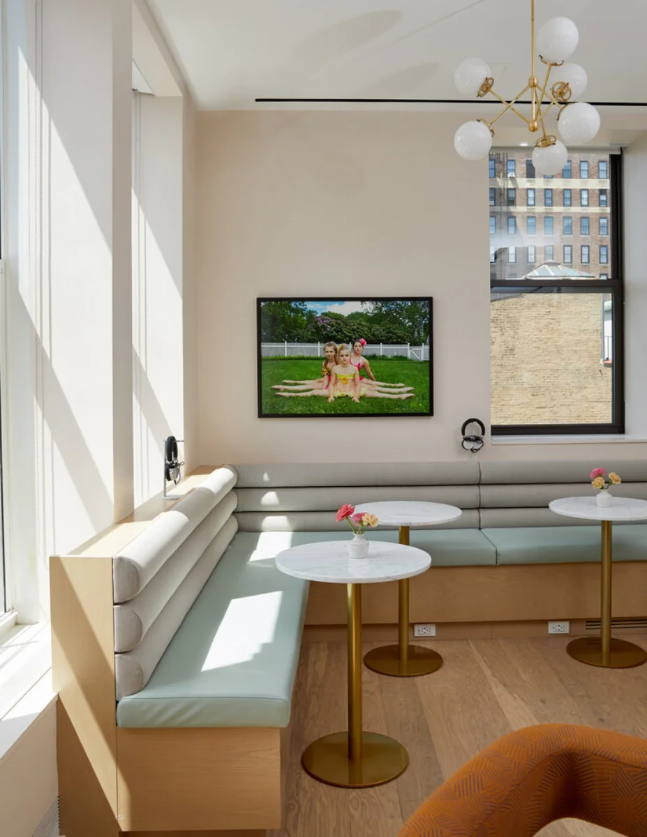 This expansion of the flagship Wing location is designed to seamlessly connect with the original space one floor above. Amenity-rich, it features a full-scale café, conference rooms, a custom pump room for new mothers, and a gender-neutral spa bathroom, ensuring a supportive and inclusive environment.