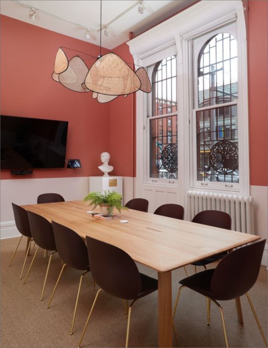 Situated in a historic four-story landmark in the East Village, this building served as Wing's headquarters. Customized work zones were designed for each specialized team, combining hot desking with private offices in a productive and upscale environment. It also features a fully custom pump room for new mothers, like all Wing locations.