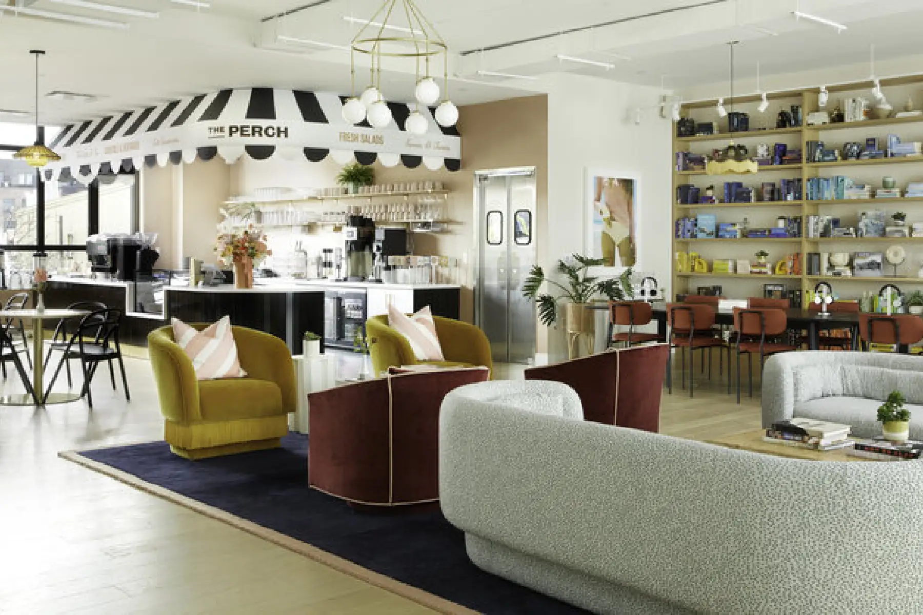 The first Wing location in Brooklyn, designed with classic New York influences, the expansive area features two co-working spaces, five private meeting rooms, a full restaurant and café, two outdoor patios, a custom pump room for new mothers, and a spa bathroom with a beauty room.