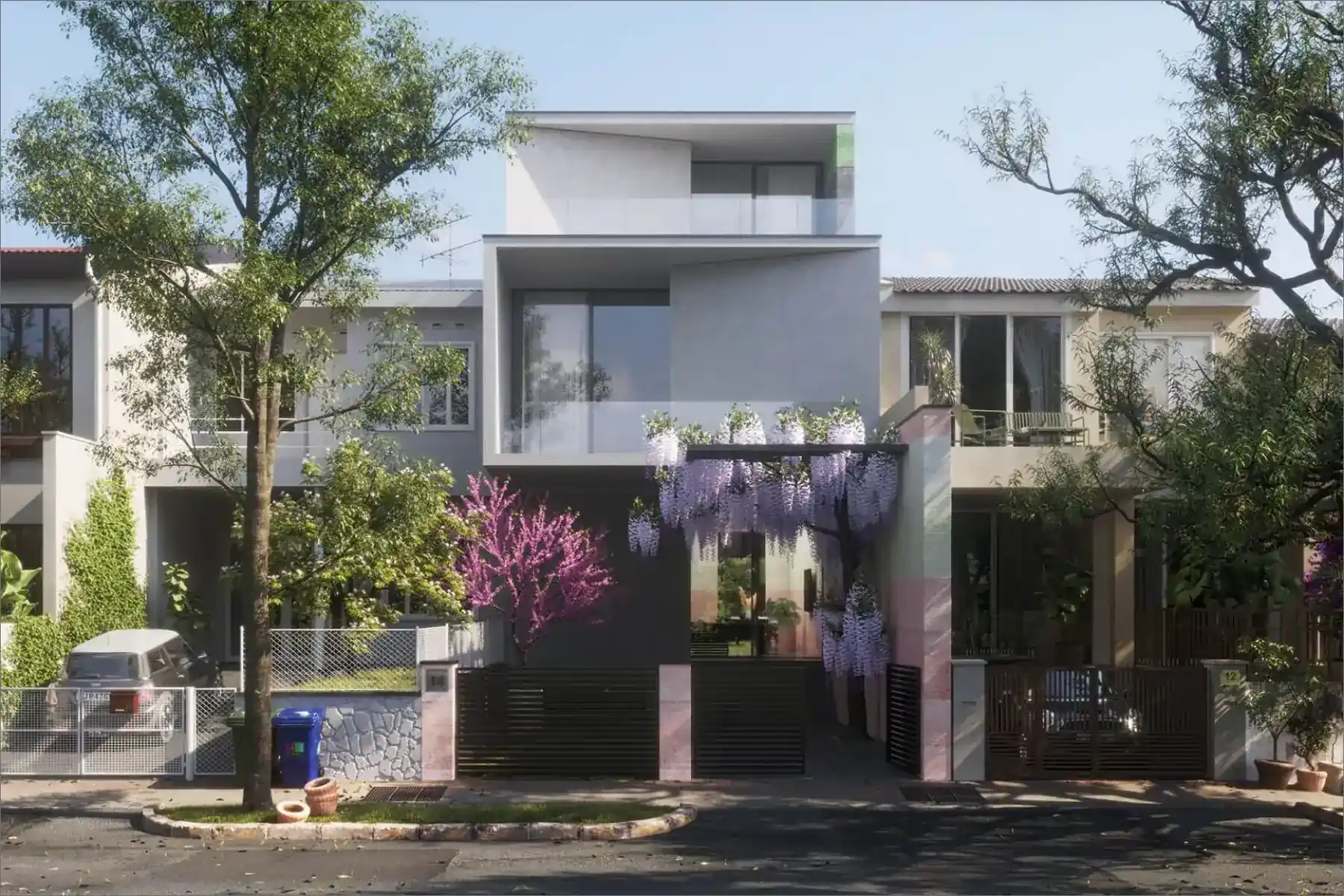 Powered by rooftop solar panels, the house is designed with layouts that optimize cross and stack ventilation, reducing reliance on mechanical systems.