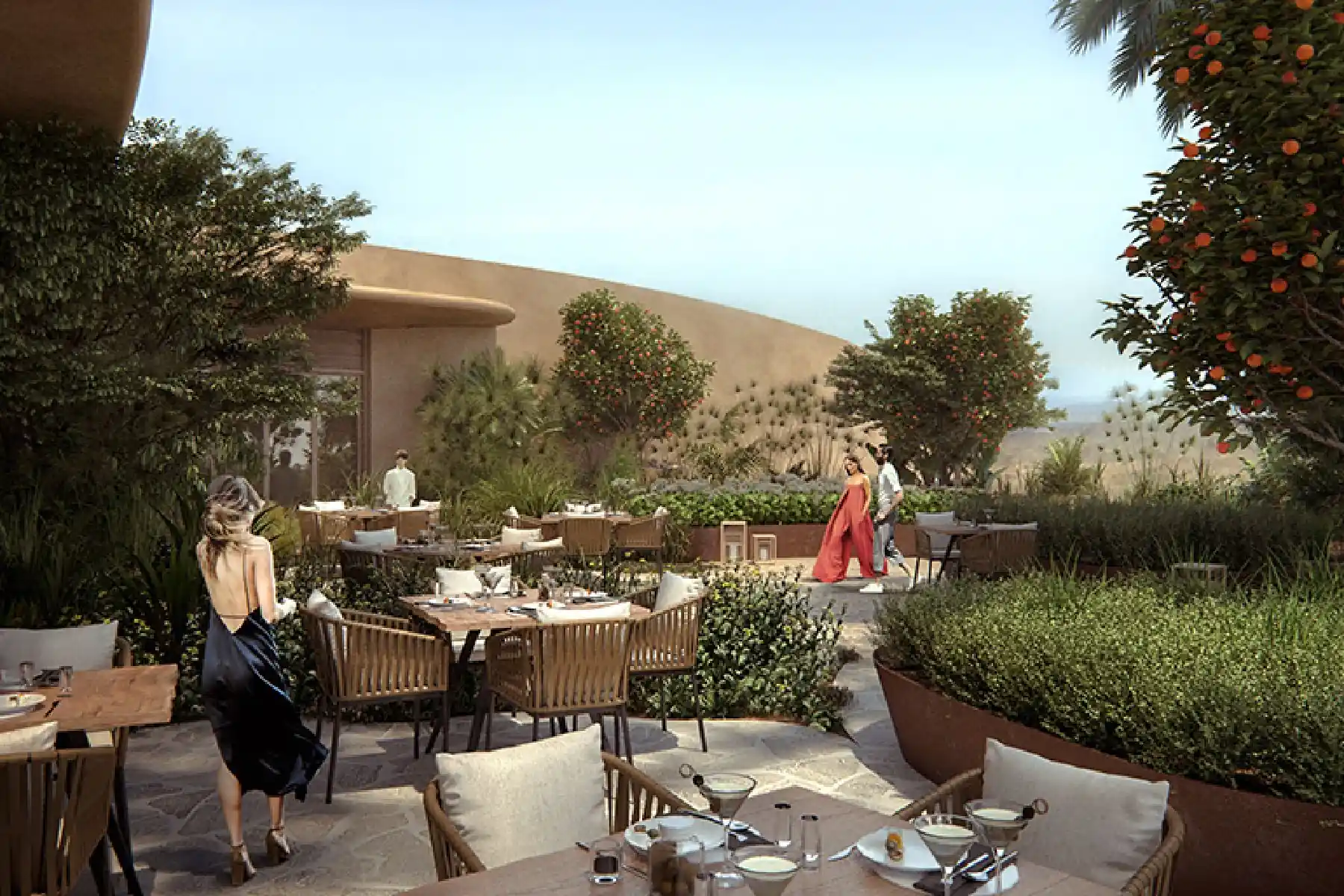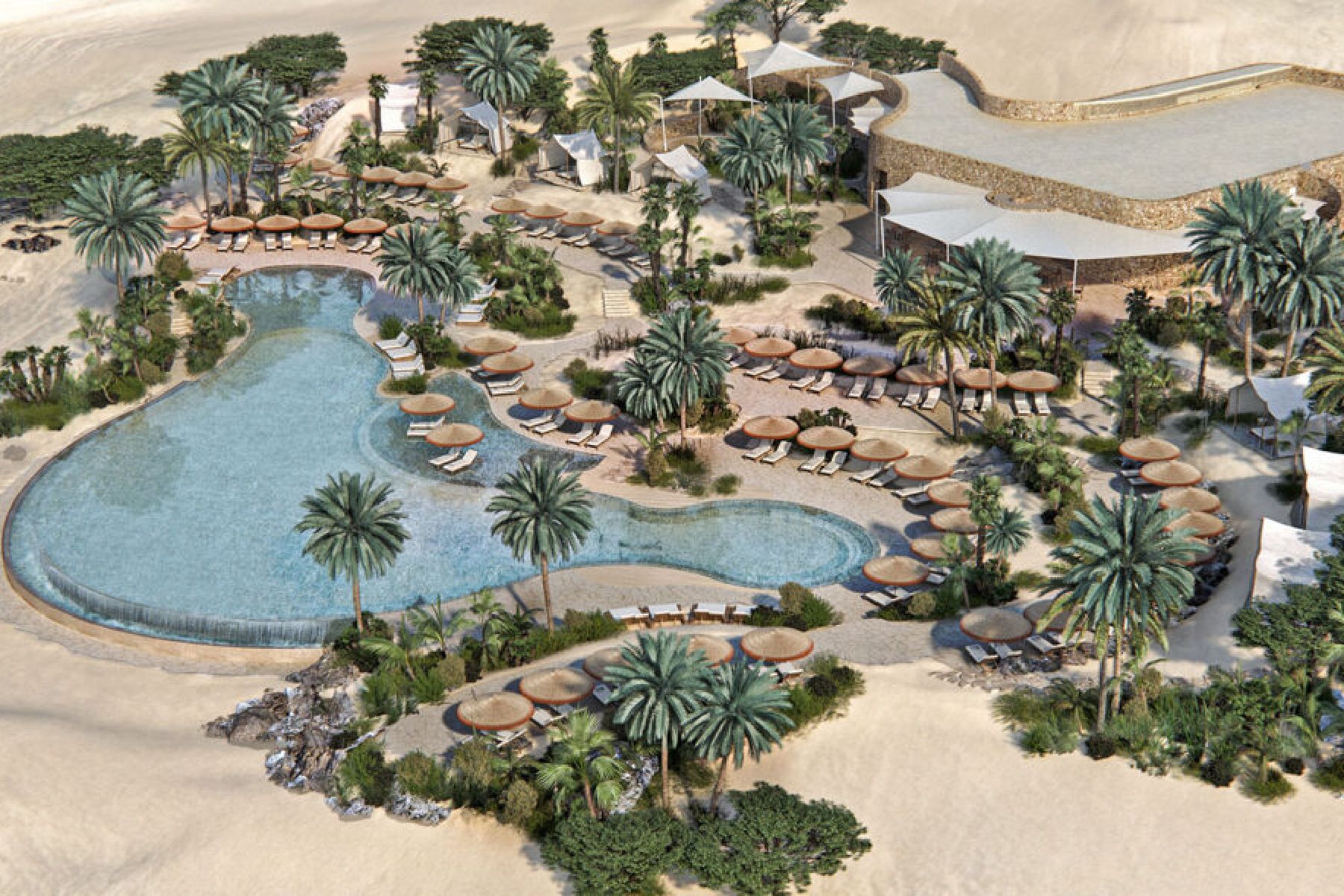 The Southern Dunes will be an ultra high-end luxury retreat nestled amid tranquil sand dunes. This innovative project is designed to seamlessly blend into its surroundings, embodying the essence of a true luxury resort while prioritising sustainability. It will feature forty tent-style villas, hotel rooms, a pool area, a banquet facility, and the inviting "Sunset Restaurant."