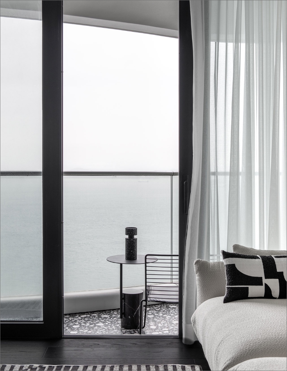 The design features wooden flooring, veneer furniture, panda tiles, terrazzo, pebbles, marble and gridlines – all in black. While all elements share a cohesive black palette, each offers a distinct texture and style. The underlying theme is Bauhaus, enhanced by organic and tubular furnishings that ensure the space remains inviting rather than overly minimalistic. This approach pays tribute to the retro aesthetic of the 1980s, creating a unique and unexpected atmosphere.