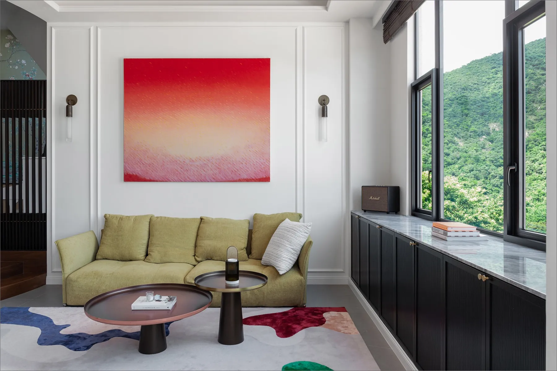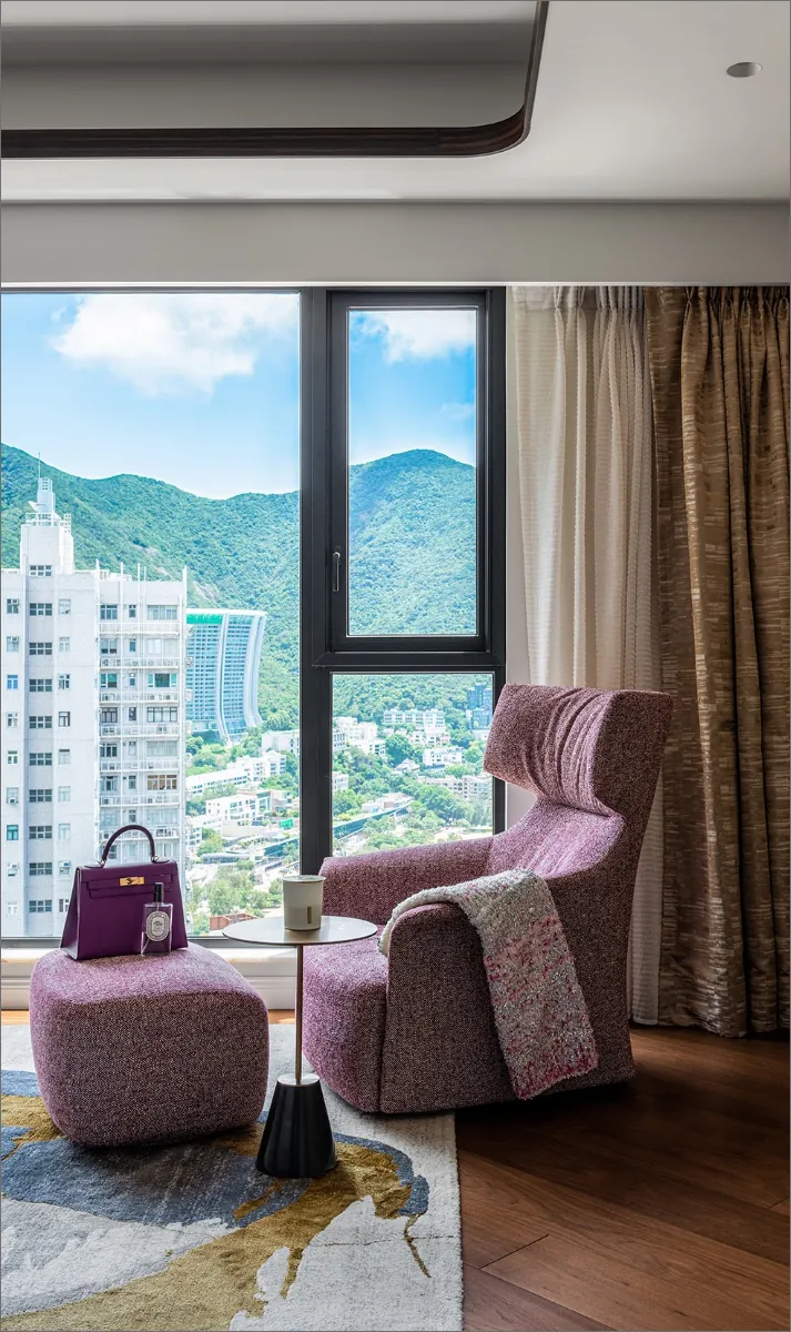 The first floor houses private spaces, with the master suite offering stunning views of Repulse Bay, designed in a luxurious modern Chinese style that harmonises wallpaper, furniture, and cabinetry. The children's bedrooms mirror each other, with a blue theme for the boy and pink for the girl. The rooftop serves as their daily training space, perfect for sunbathing during the day and stargazing at night.