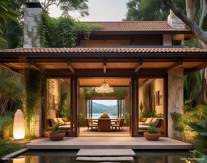 Showcasing 30 villas with organic and biophilic architecture. Each of the 4500 sq ft villa boasts exteriors adorned with lush greenery, enhancing aesthetic appeal while Fostering a deep connection with nature. By incorporating natural materials like wood and stone, along with serene features such as indoor gardens, Della Carambolim embodies the principles of biophilic design, creating a tranquil living environment.