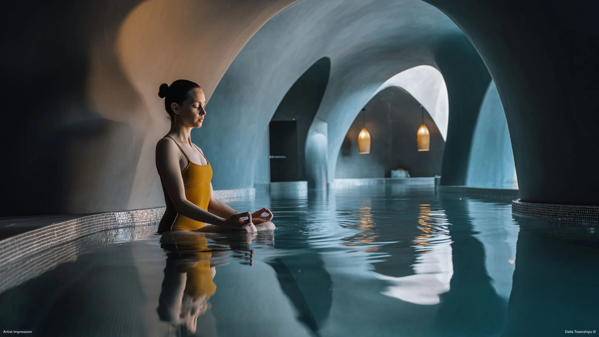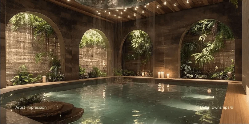 A transformative Wellness Pavilion featuring a Luxe Hammam, Spa, Swimming Pool, and Fitness Studio