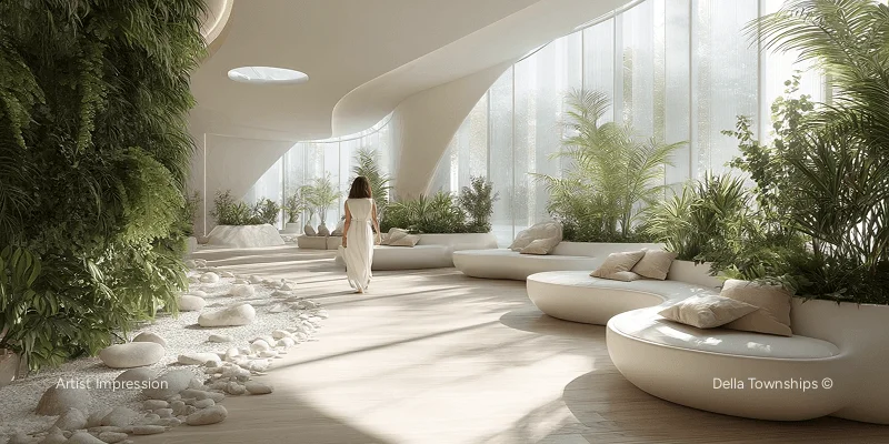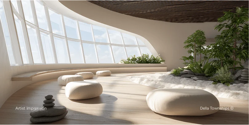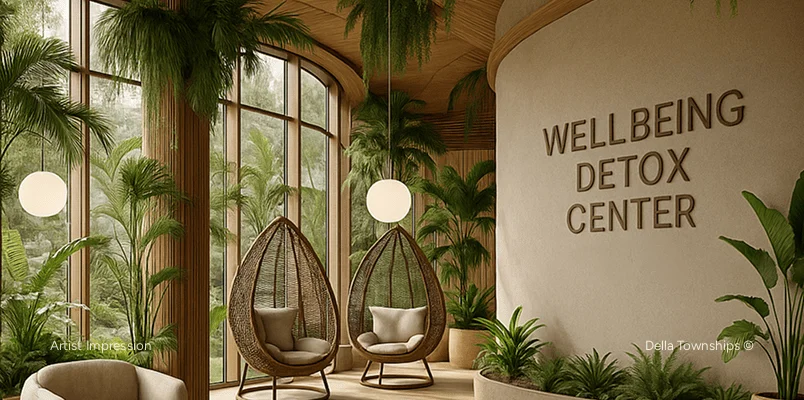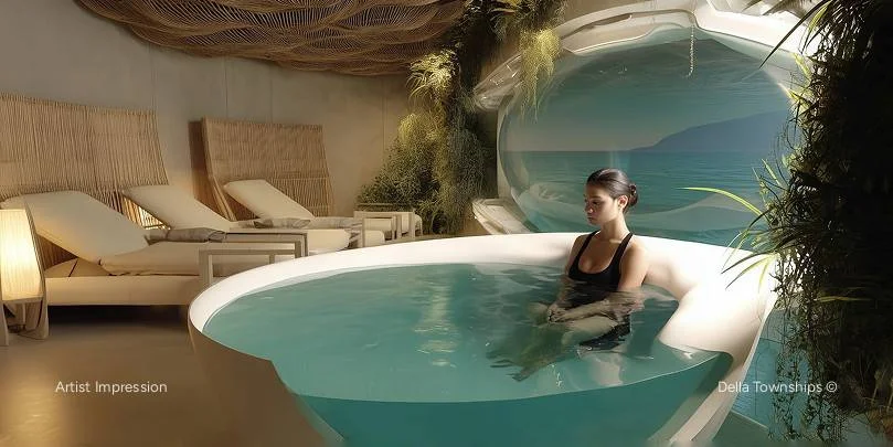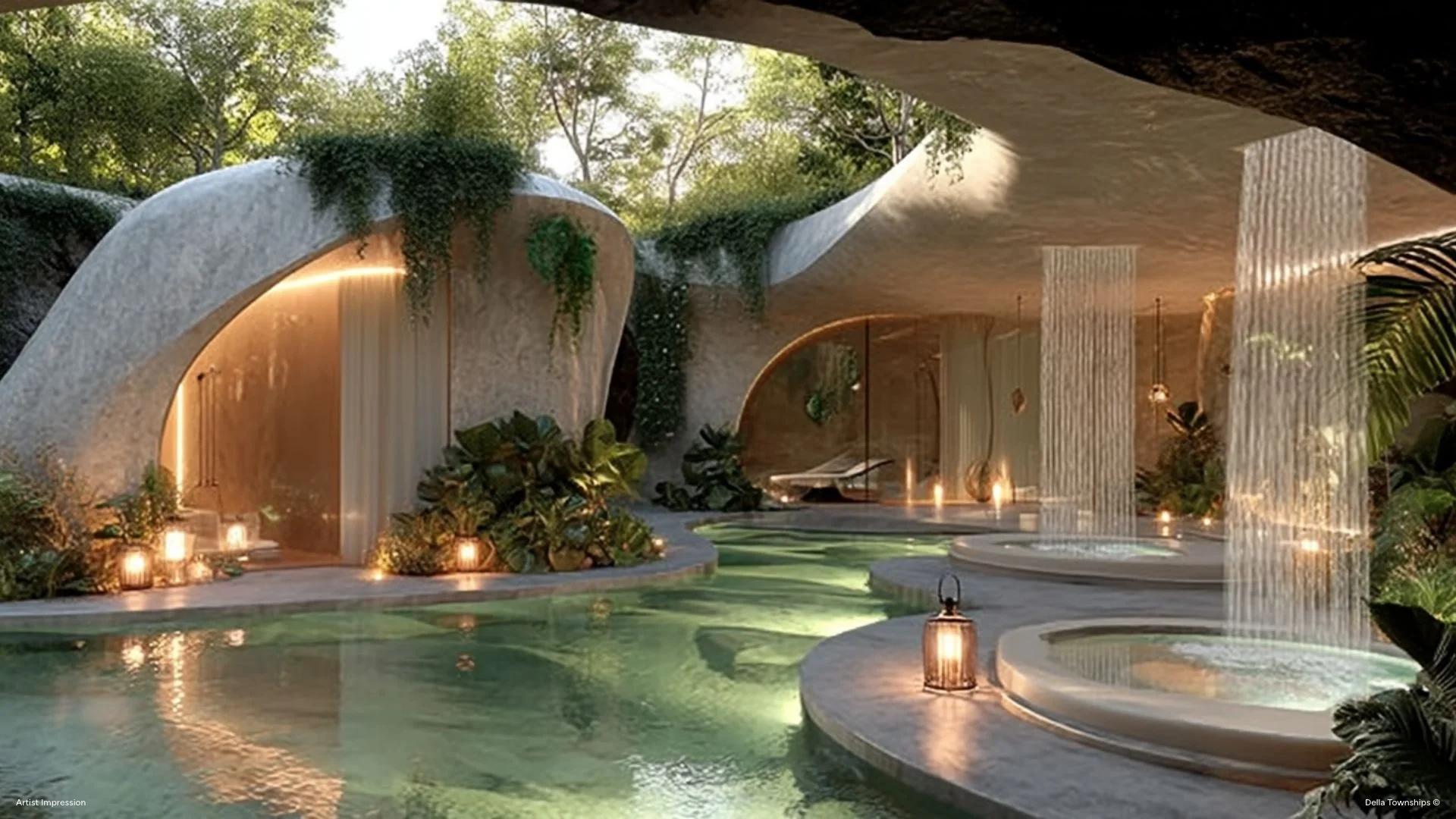 Spanning across 7 acres, Della Carambolim, offers 30 private villa plots, 48 luxury wellness residences, and 125 luxury wellness resort rooms, each designed with a focus on wellness, detox, and age rejuvenation retreat. The retreat features 3 celebrity chef restaurants and bars, a luxe hammam and spa, adventure bungee, a garden in the sky, and wellness spaces designed to foster a sense of community.