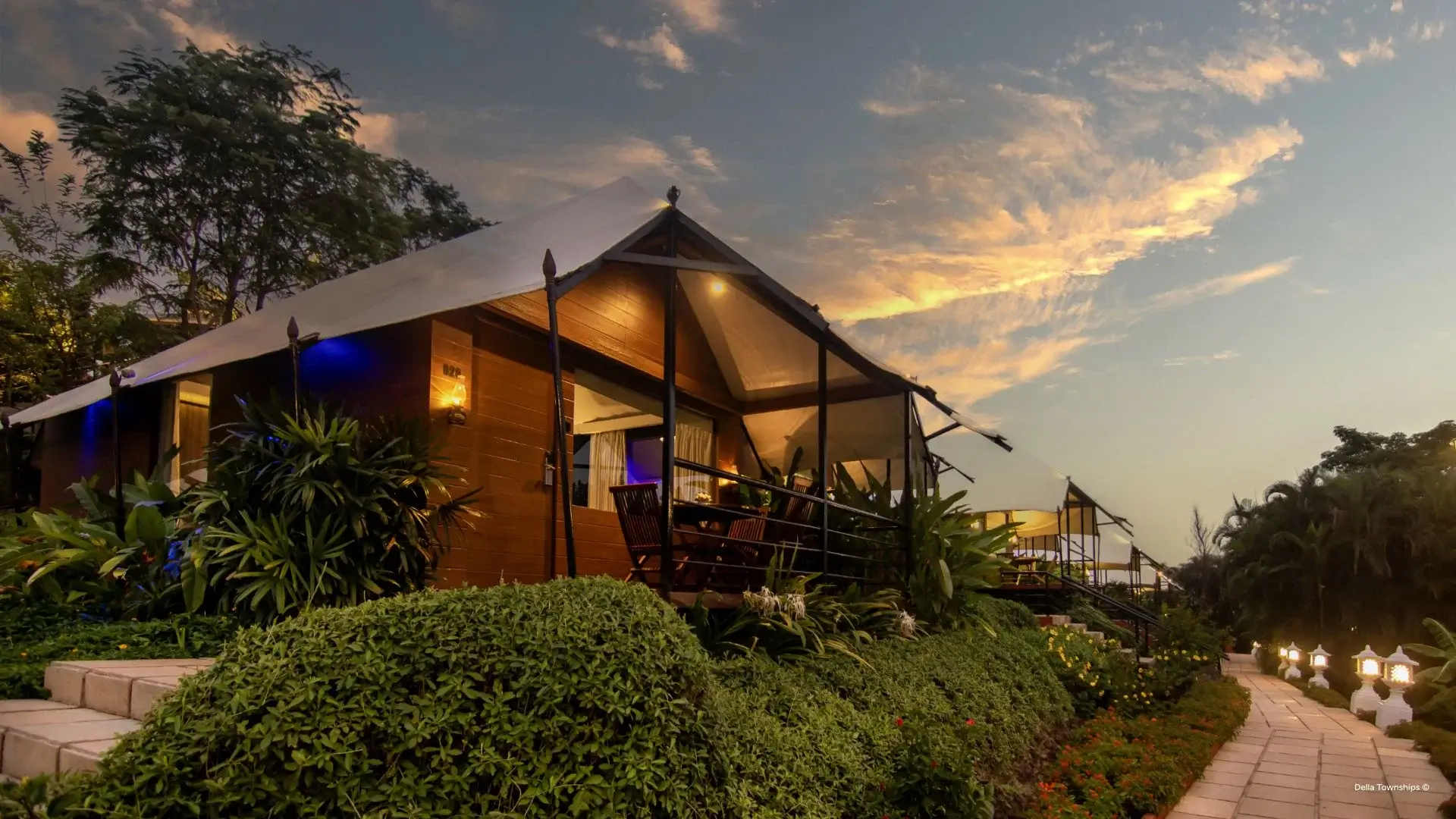 Della Outlet Mall is a 50,000 sq ft, luxury-only promenade inside our salutogenic townships—living environments where design, wellness, community and nature move in harmony. The anchor store is Della Luxury Products, housing 25 to 50 designer brand stores including luxury international & domestic brands, celebrity-chef themed fine dine restaurant, cafés, kids’ crèche and play areas, preview theatre, co-working space, and a local produce store with a weekly farmers’ market—plus resort-grade valet and concierge services.