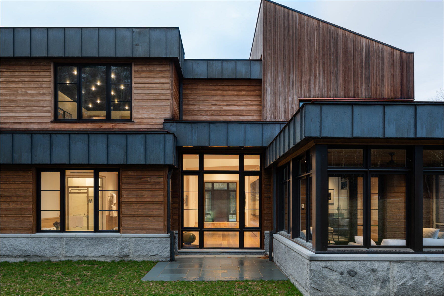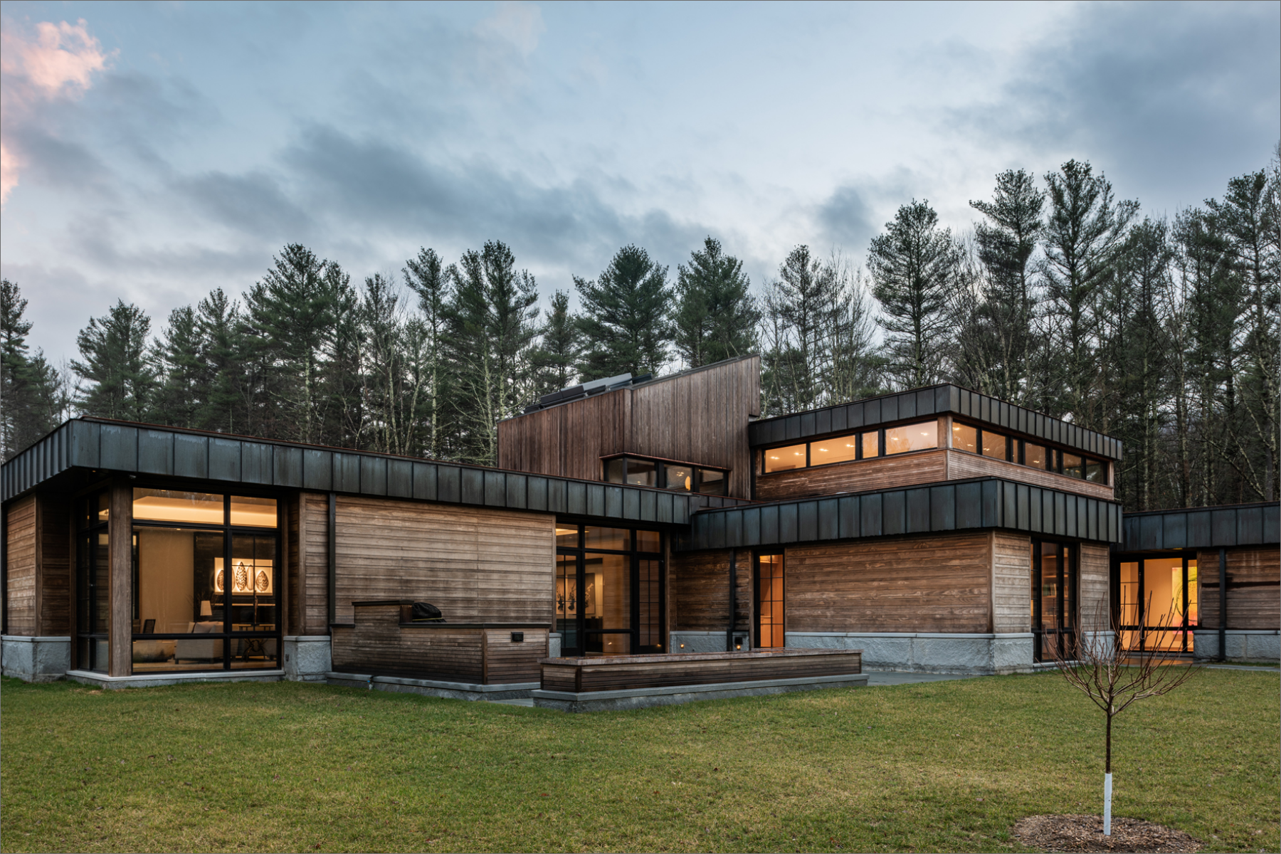 Nestled in a woodland clearing at the foot of the Berkshire Mountains, this contemporary farmhouse serves as a gathering place for three generations of one family. Designed for a semi-retired couple, the home comfortably accommodates extended family and showcases their art collection.