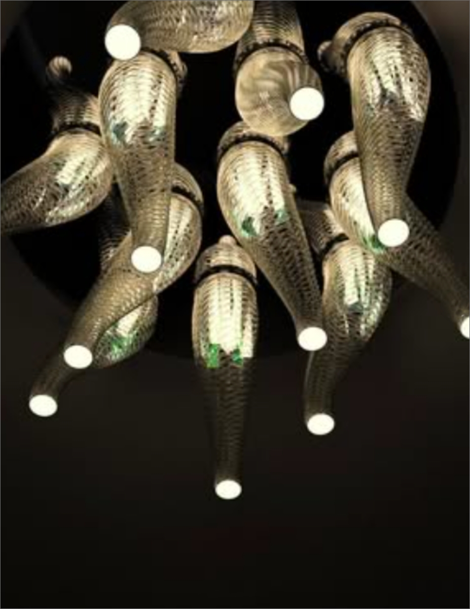 Using 3D printing technology, these lights consist of multiple elements, each capable of being freely transformed and molded in different directions. The fixtures, reminiscent of biological marine architecture, eliminate both UV and blue light risk.