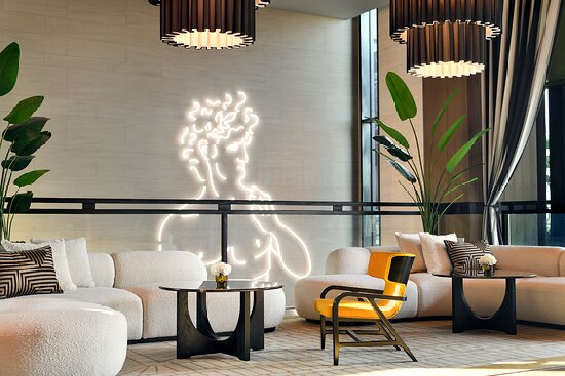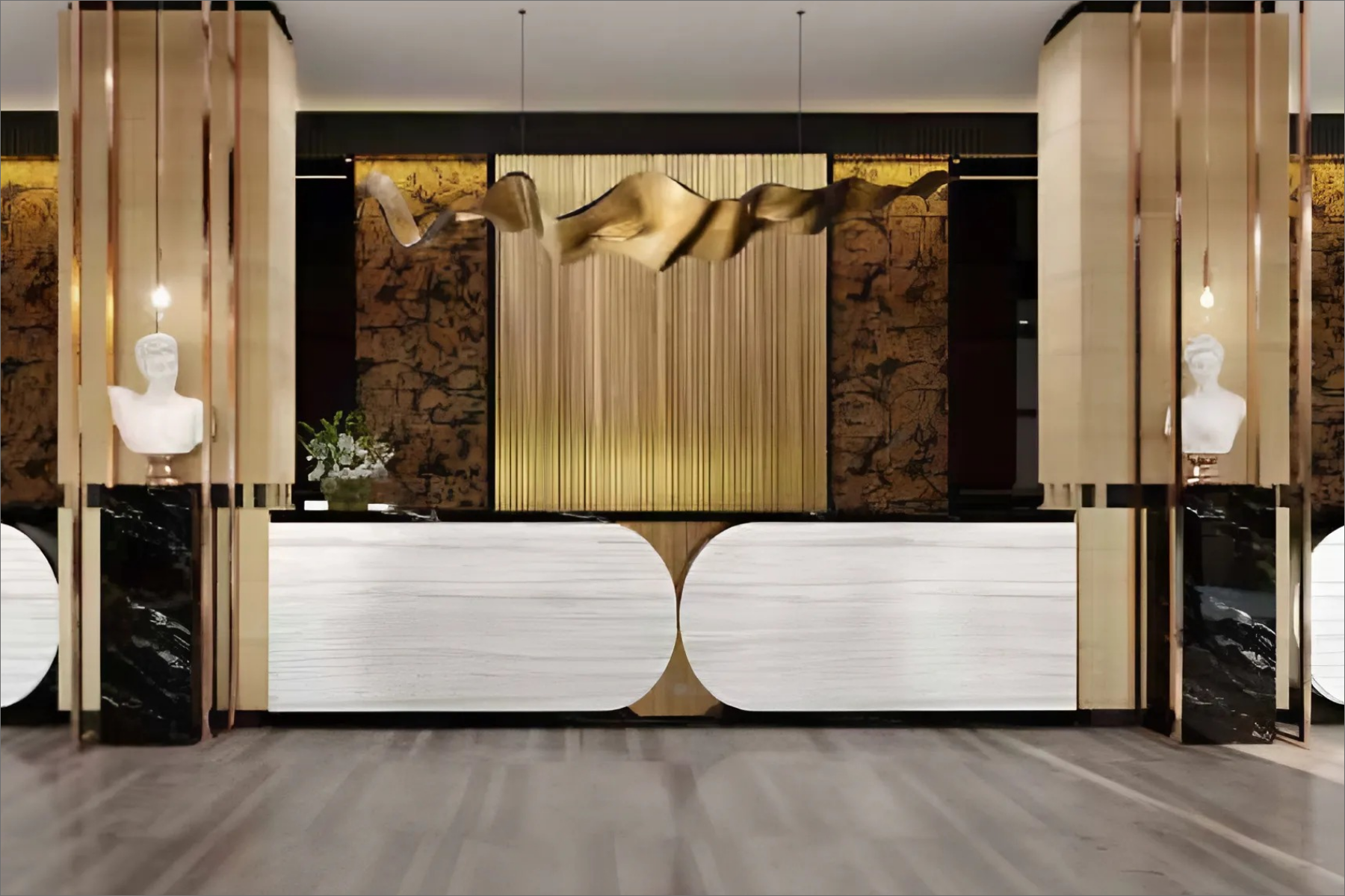 An Elegant Lobby Fused with Opulent Roman Design and Trendy Modern Styles