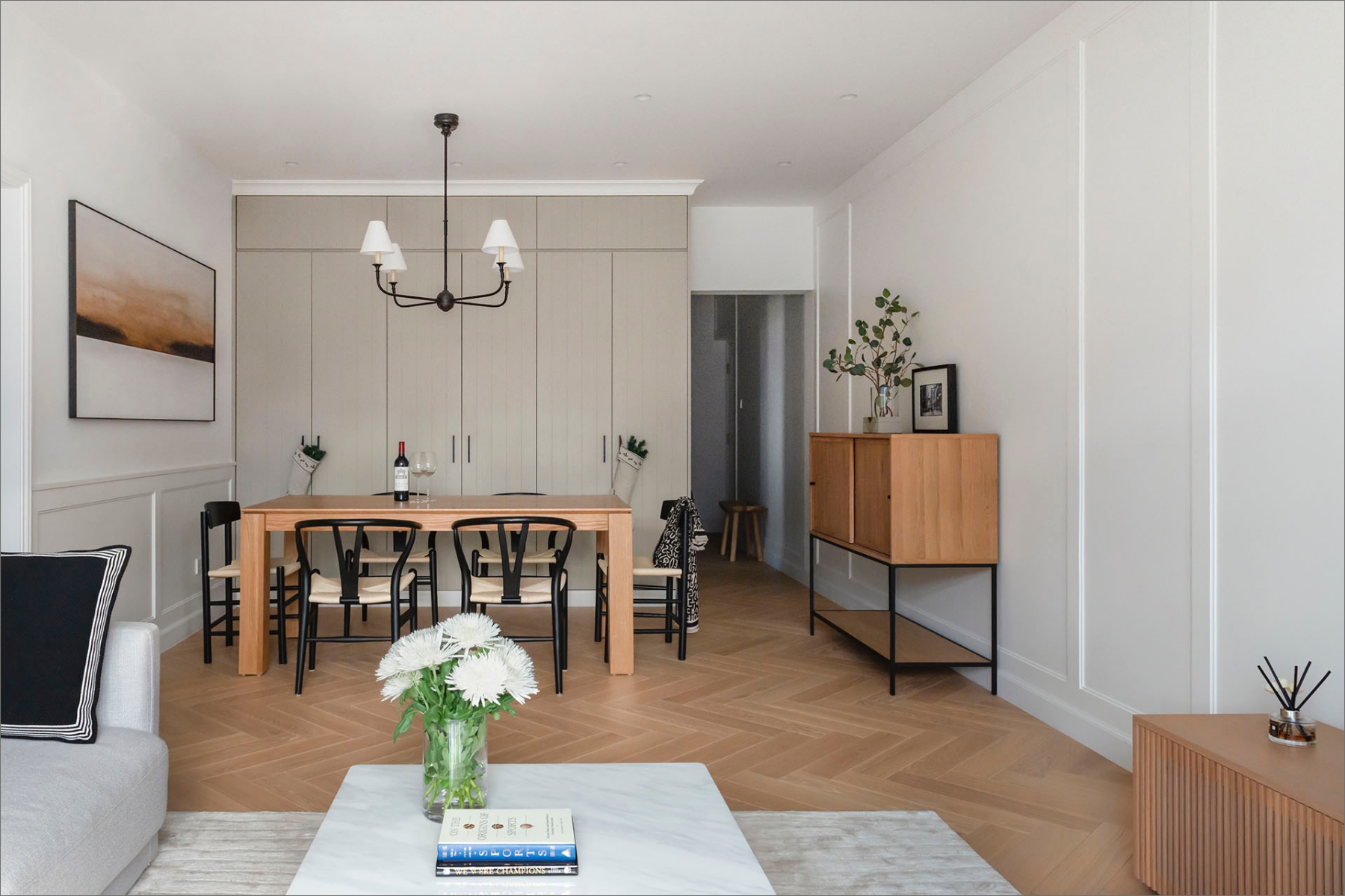 The owner, a devoted fan of contemporary American design, desired a cozy and casual atmosphere for her new home. To achieve this, YC created a layout that has been thoughtfully modified while retaining three bedrooms for the family.